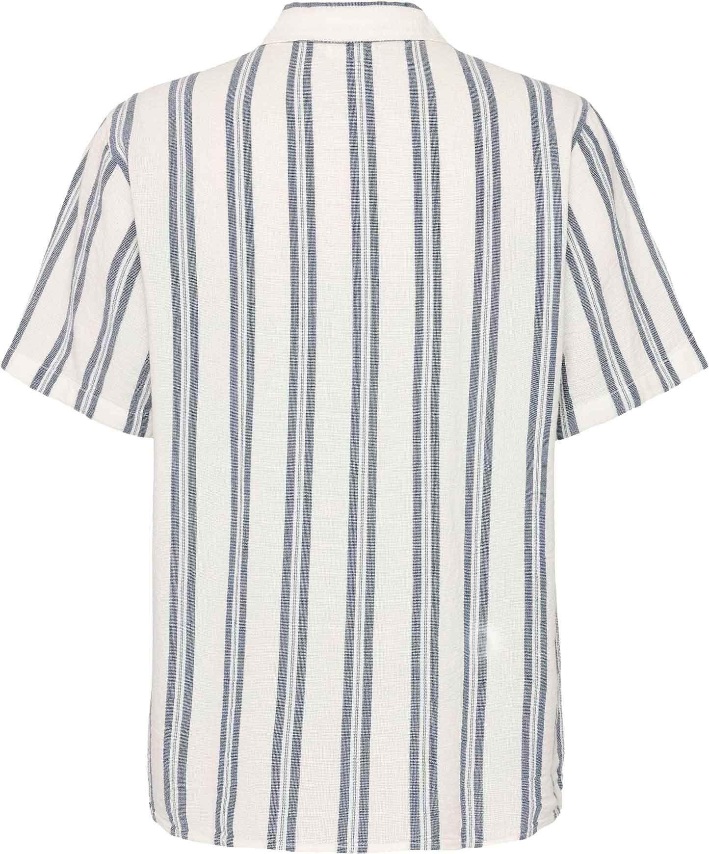 KnowledgeCotton Apparel Box Short Sleeve Striped Cotton Shirt Blue Stripe