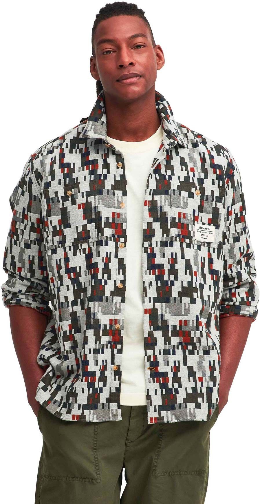 Une poche poitrine ton sur ton vient compléter le motif graphique et abstrait, parachevant ainsi le design soigné de cette chemise.