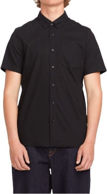 Chemise Volcom Everett Oxford SS Shirt New Black en coton premium, coupe moderne, poche poitrine plaquée, logo Stone brodé.