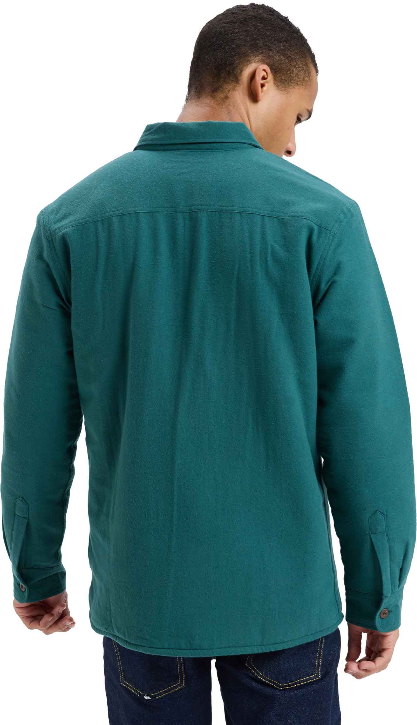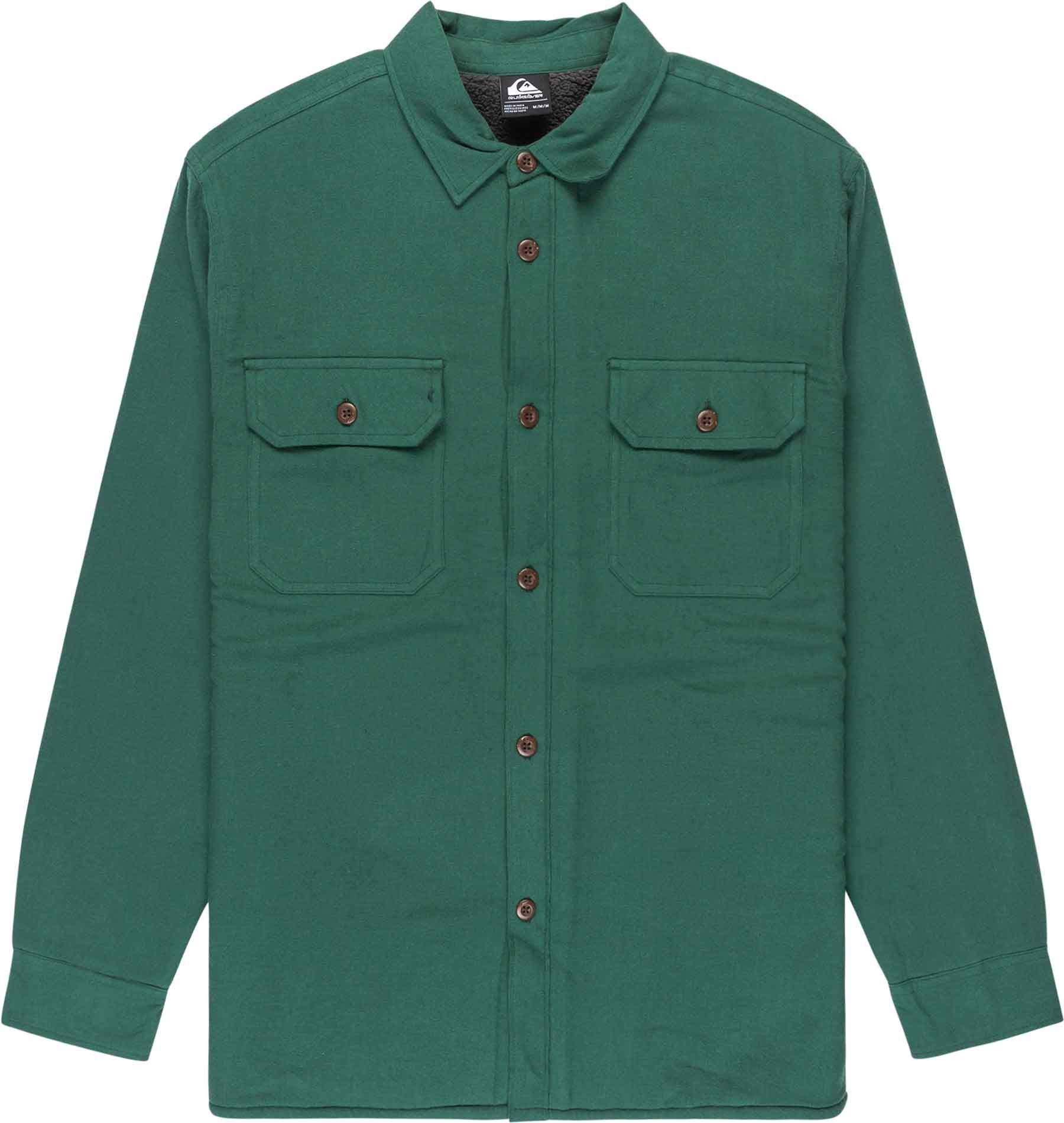 Surchemise Quiksilver Husson Sherpa Trekking Green en flanelle 100 % coton, doublure polaire sherpa, coupe ample, 2 poches poitrine : chaleur et style décontracté au quotidien.
