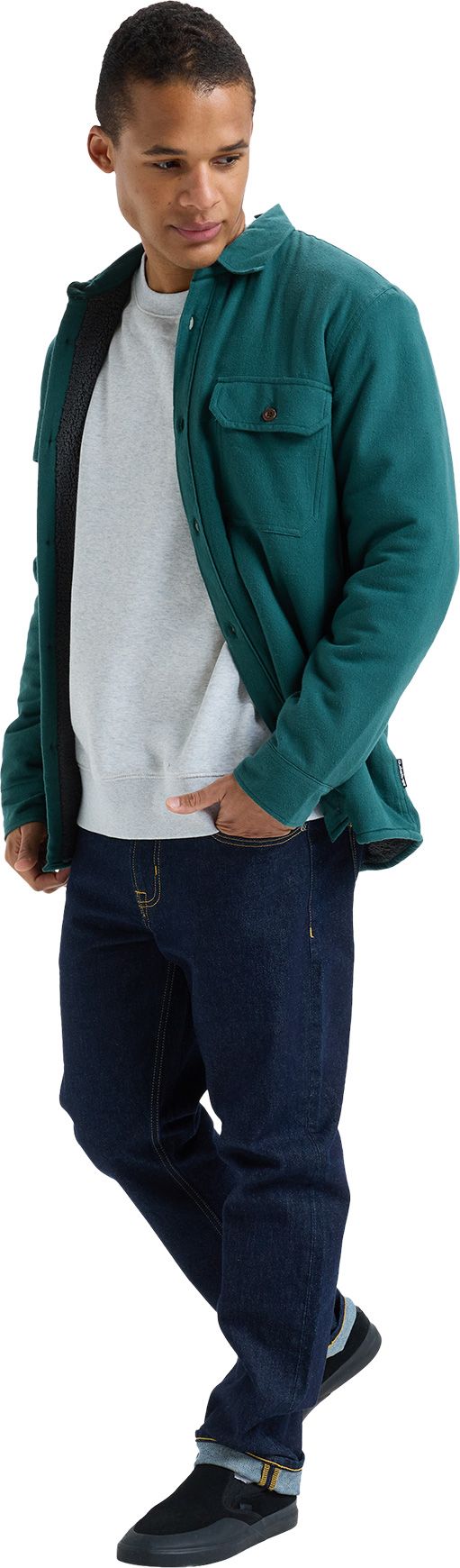 Sa doublure en polaire sherpa garantit confort et chaleur durant toute la journée. La liberté de mouvement est optimisée par une coupe généreuse, alors qu’une note d’élégance intemporelle est apportée par le col traditionnel et les manches longues.