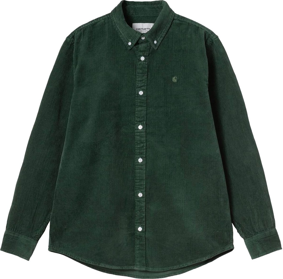 Carhartt WIP L/S Madison Cord Shirt Sycamore Tree : chemise unisexe en velours côtelé, manches longues, coupe classique, coloris sycamore, intemporelle et facile à assortir.