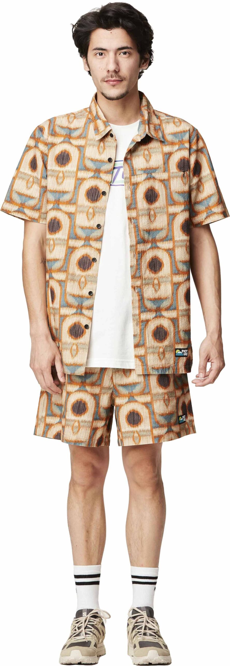 Chemisette Picture Organic Clothing Leewarm Tiki Print homme, en coton, coupe décontractée et design à motifs pour un style unique par temps chaud.