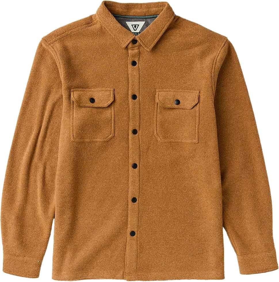 Chemise Vissla Looper Terry Eco LS Shirt Rubber homme en polaire ultra-douce, chaude et confortable pour la ville ou la nature, avec poches poitrine rabat boutonné et doublure chambray contrastée au dos.