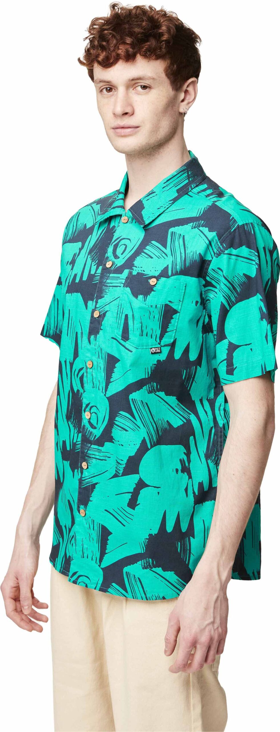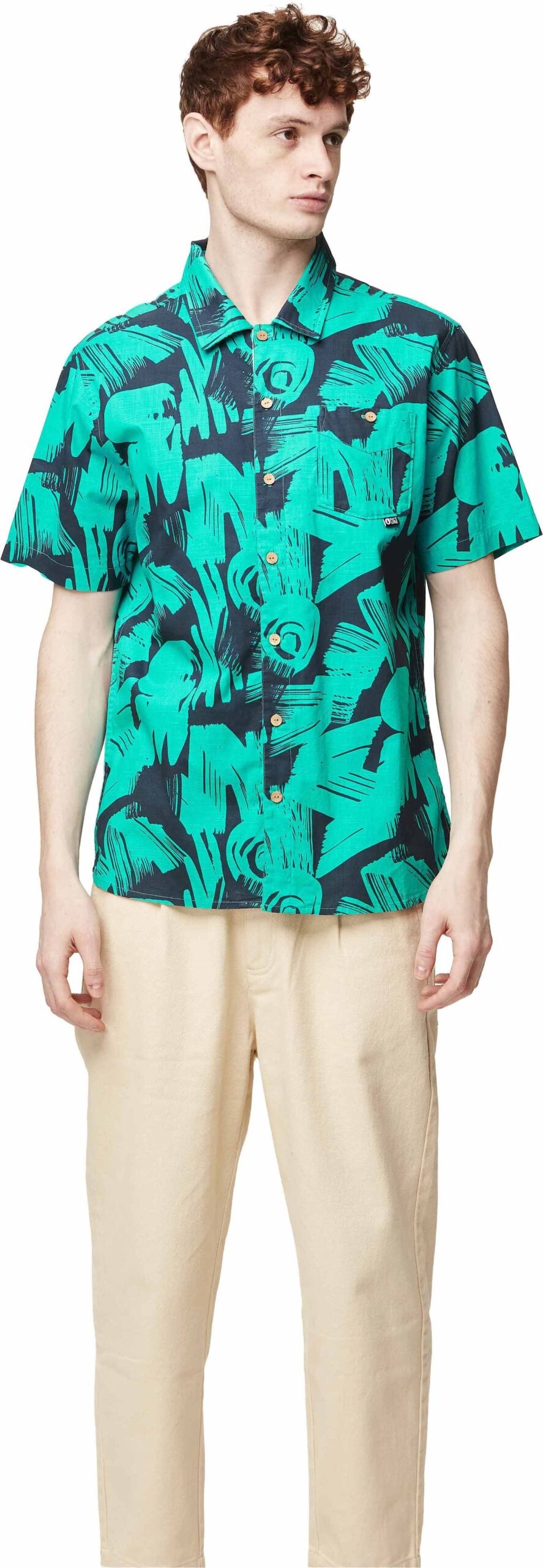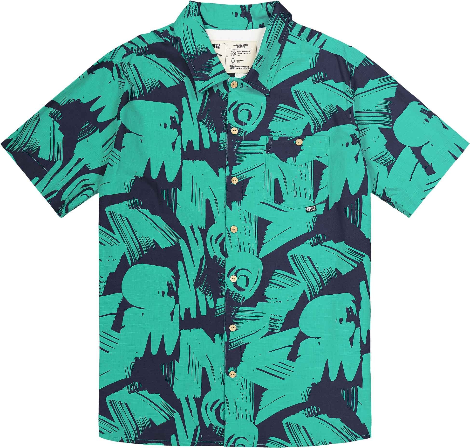 Chemisette Picture Organic Clothing Mataikona SS Atlantic Coast Print pour homme, en coton biologique léger et respirant, coupe décontractée à motifs printemps-été 2024.