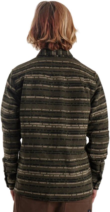 Chemise Roark Nordsman Dark Military Jacquard en laine mélangée, coudes et col renforcés pour durabilité et confort isolant. Deux poches boutonnées, fermeture centrale.