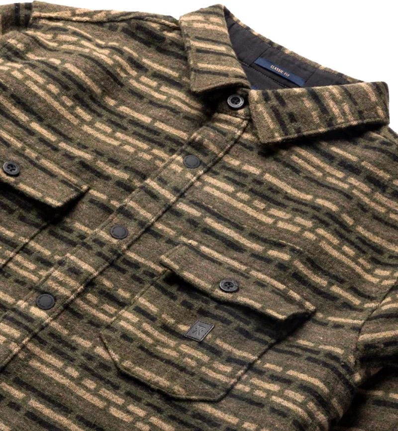 Depuis les débuts de Roark, la chemise Nordsman Dark Military Jacquard n’a cessé de l’accompagner dans ses périples, une fidélité justifiée par des caractéristiques alliant robustesse et aisance au quotidien. Parmi ses signes distinctifs figurent un col et des coudes renforcés, auxquels s’ajoute une étoffe dense et moelleuse composée d’un mélange de laine, garantissant isolation et bien-être par tous les temps. Deux poches munies de boutons complètent cette pièce, fermée par une patte de boutonnage centrale.