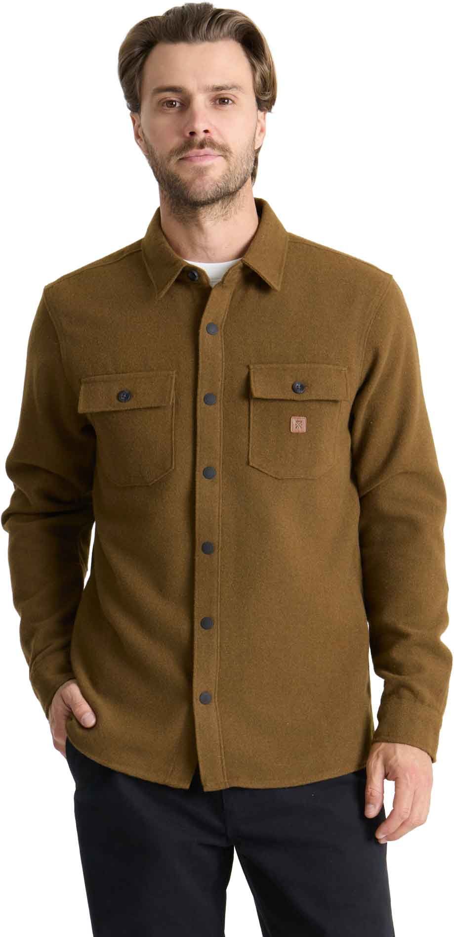 Chemise Roark Nordsman Otter en flanelle polyester-laine : thermorégulation naturelle, coupe standard manches longues, poches boutonnées, style extérieur intemporel.
