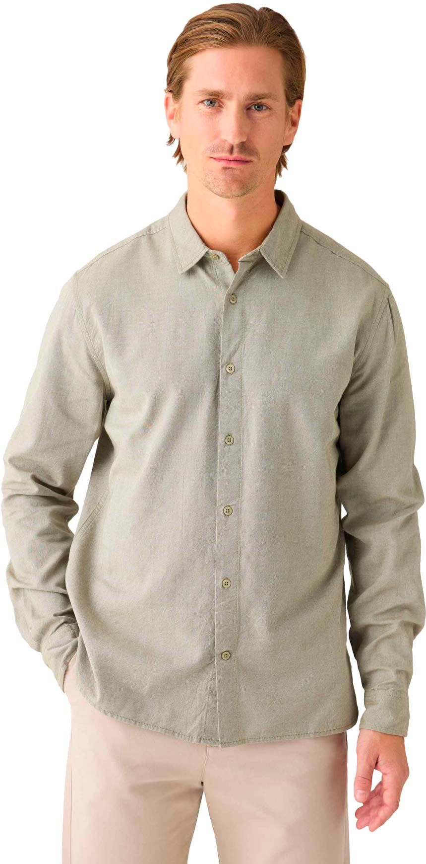 Signée KnowledgeCotton Apparel, la chemise Regular Fit Light Twill Shirt Burned Olive pour homme marie intemporalité et simplicité. Confectionnée en coton biologique, cette chemise à manches longues assure un confort pérenne pour le quotidien.