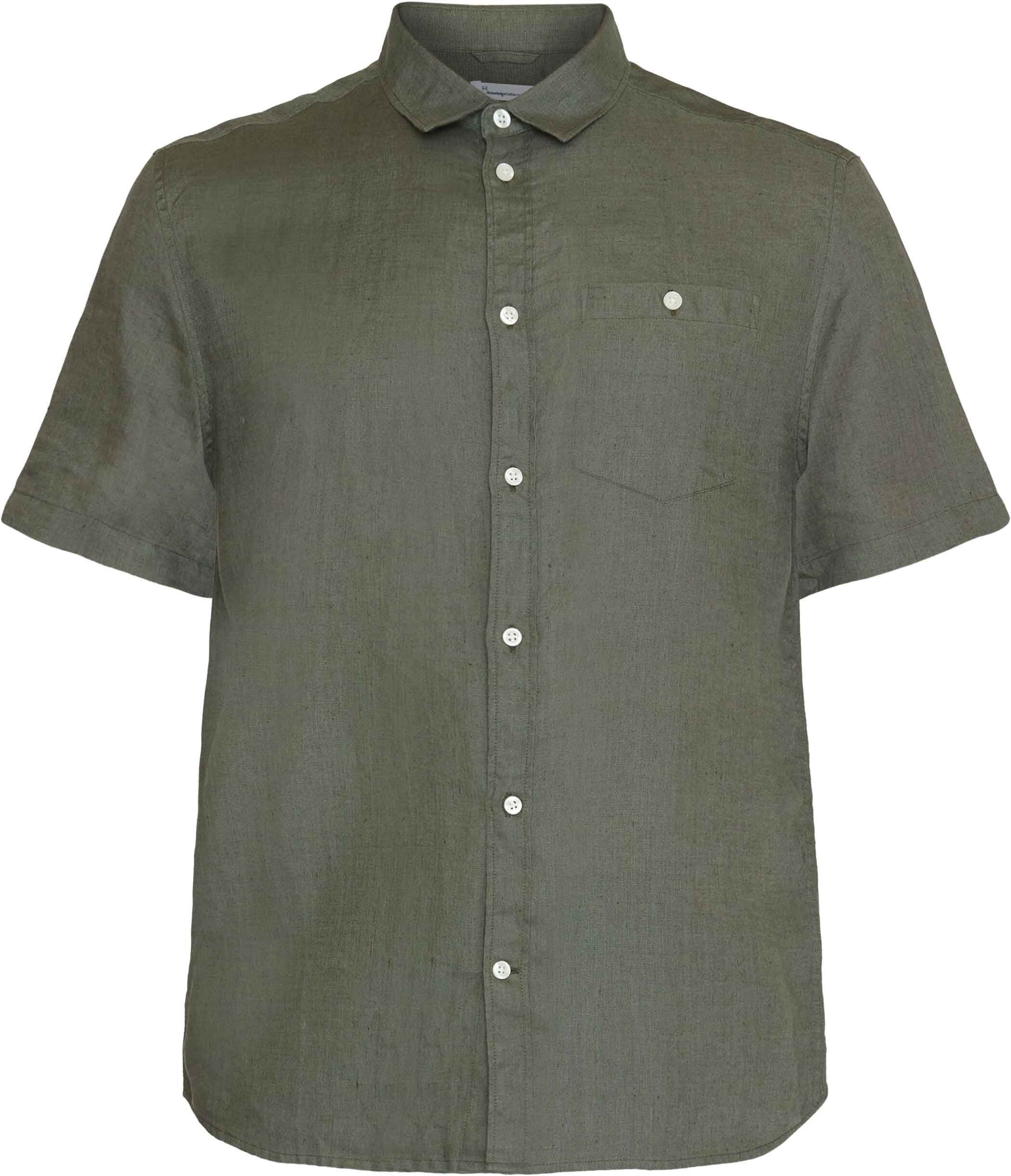 KnowledgeCotton Apparel Regular Linen Short Sleeve Shirt Burned Olive