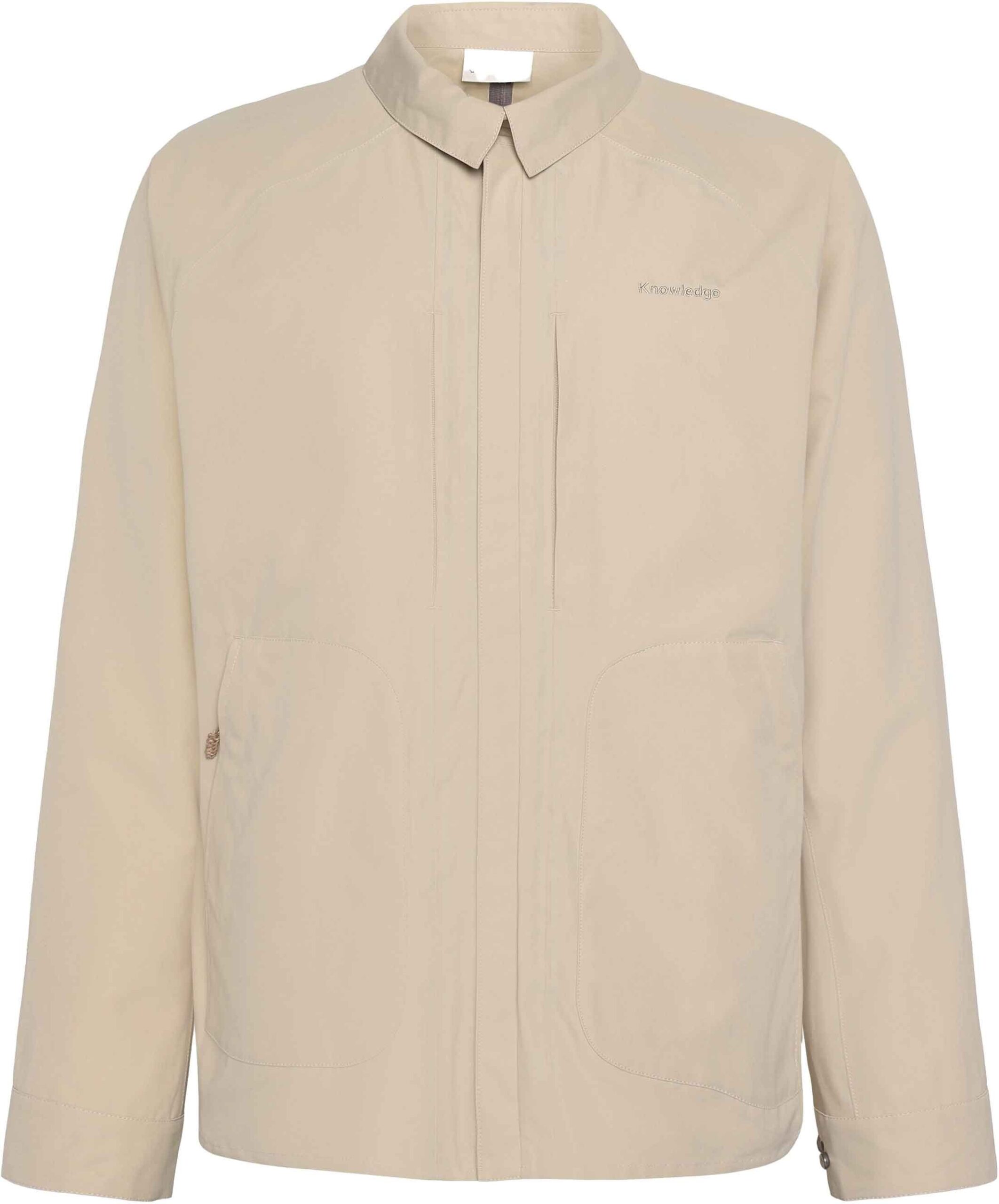 La surchemise KnowledgeCotton Apparel Vent Canvas 200 Classic Overshirt Light Feather Gray pour homme allie toile Supima 200 déperlante DWR, coupe-vent et respirance pour la ville ou l’outdoor.