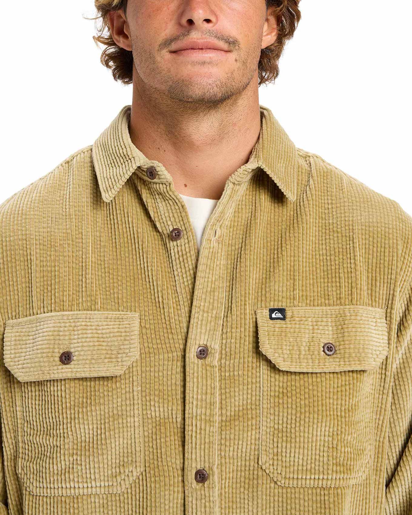 Surchemise Quiksilver Venture Cord Sponge / Grape Leaf en velours côtelé 100 % coton, coupe ample, col classique, 2 poches poitrine, confort et style décontracté.