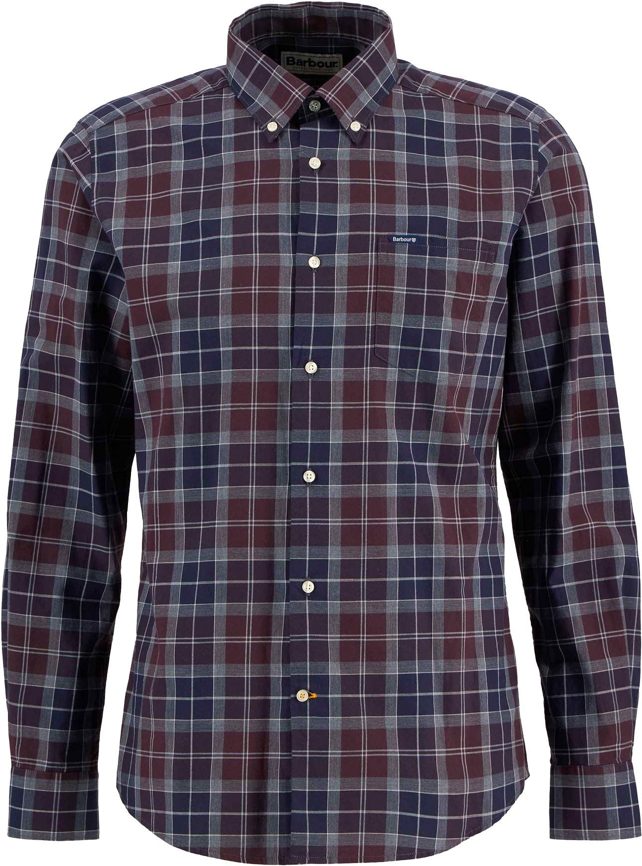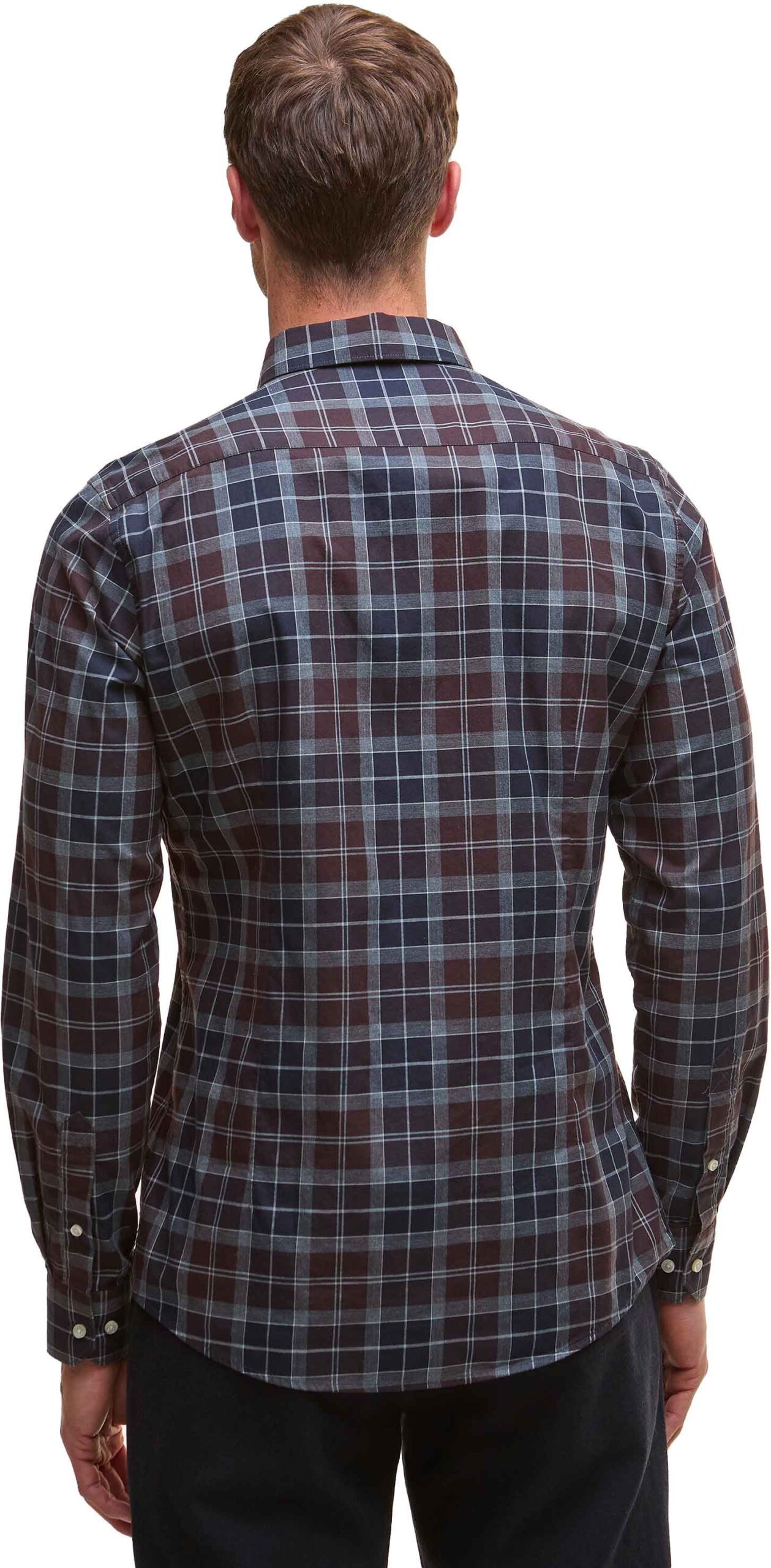 Chemise Barbour Wetheram Tailored Tartan Shirt Midnight Oak Tartan pour homme, motif tartan fin aux tons hivernaux, coupe ajustée, toile 100 % coton douce, port classique ou décontracté.
