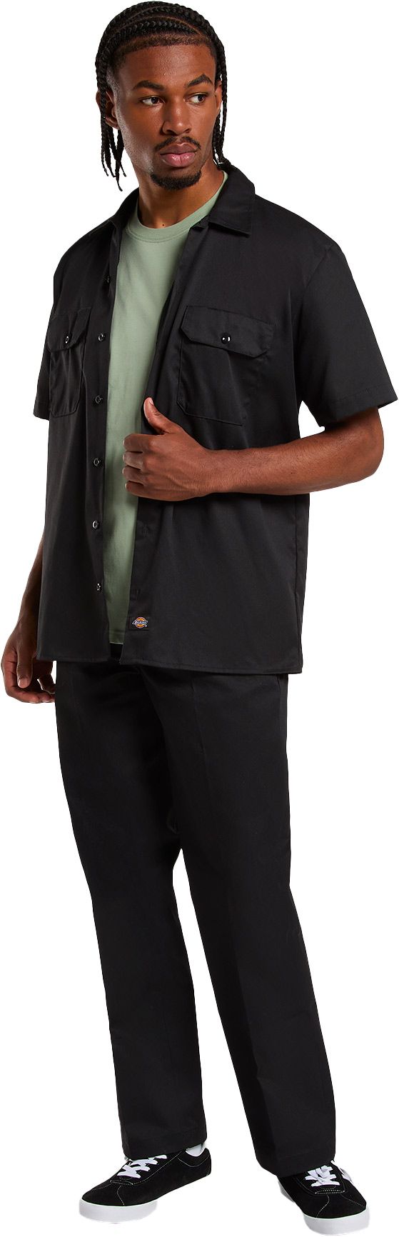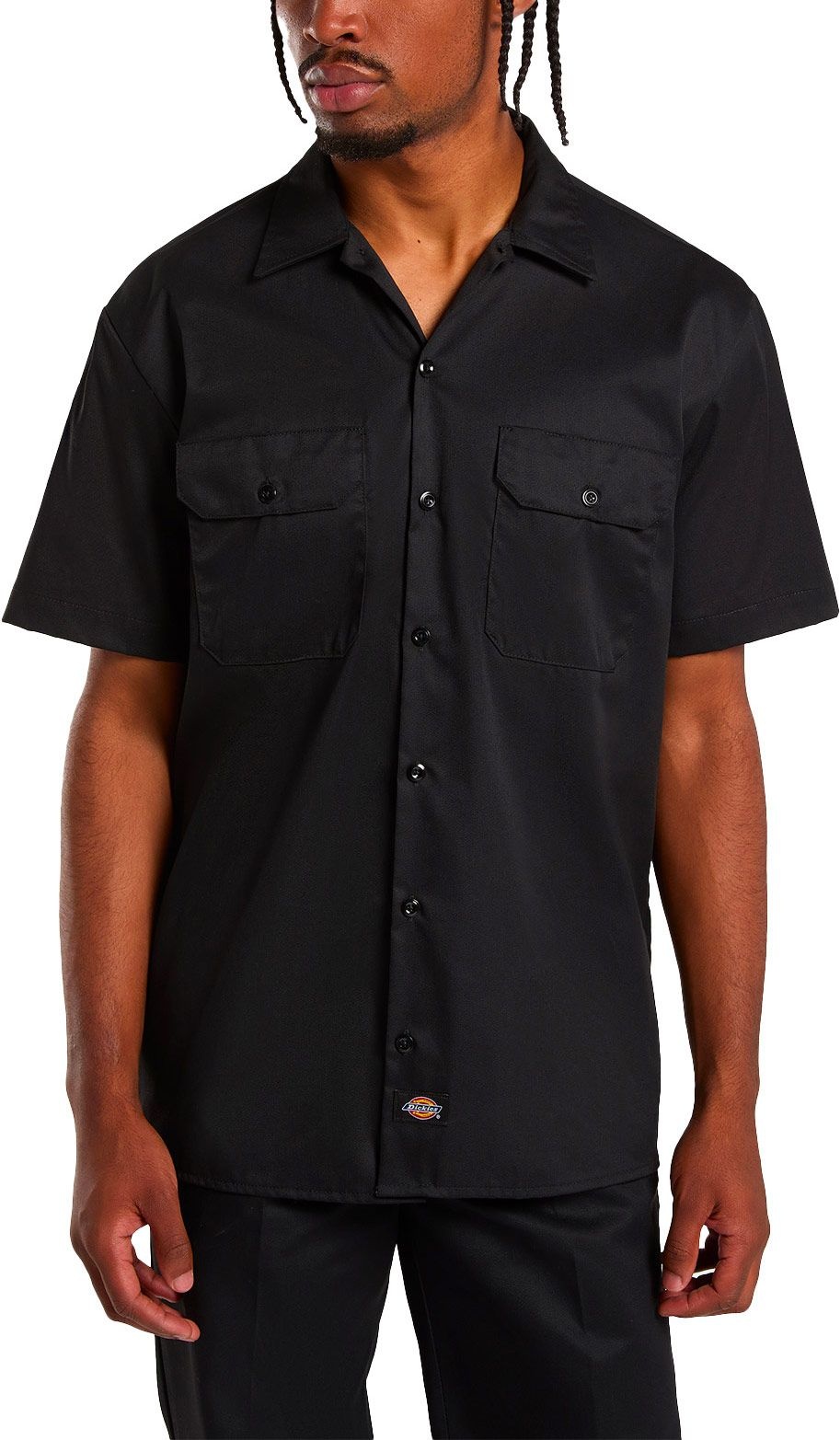 Chemise à manches courtes Dickies Work Shirt SS Rec Black pour homme, en sergé résistant, coupe droite moderne avec deux poches poitrine boutonnées, légère et adaptée aux journées chaudes.