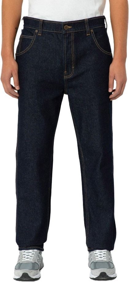 Le jean Dickies Houston Denim Rinsed pour homme conjugue coupe décontractée, jambe droite et coton 100 % pour un confort durable et un style intemporel adapté au quotidien professionnel ou urbain.