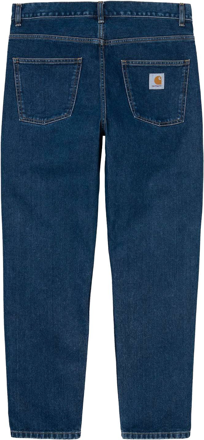 Le pantalon Carhartt WIP Newel Pant Blue en coton biologique offre une coupe relaxe et plusieurs poches pratiques pour un confort quotidien.