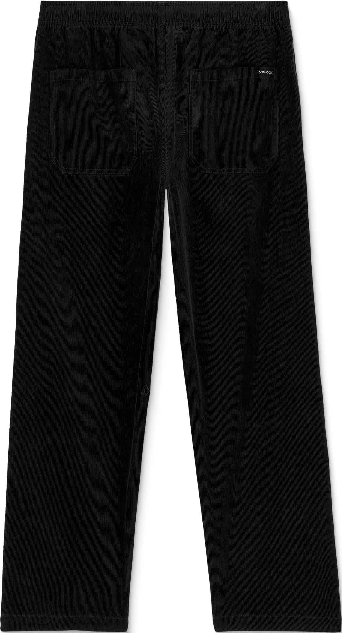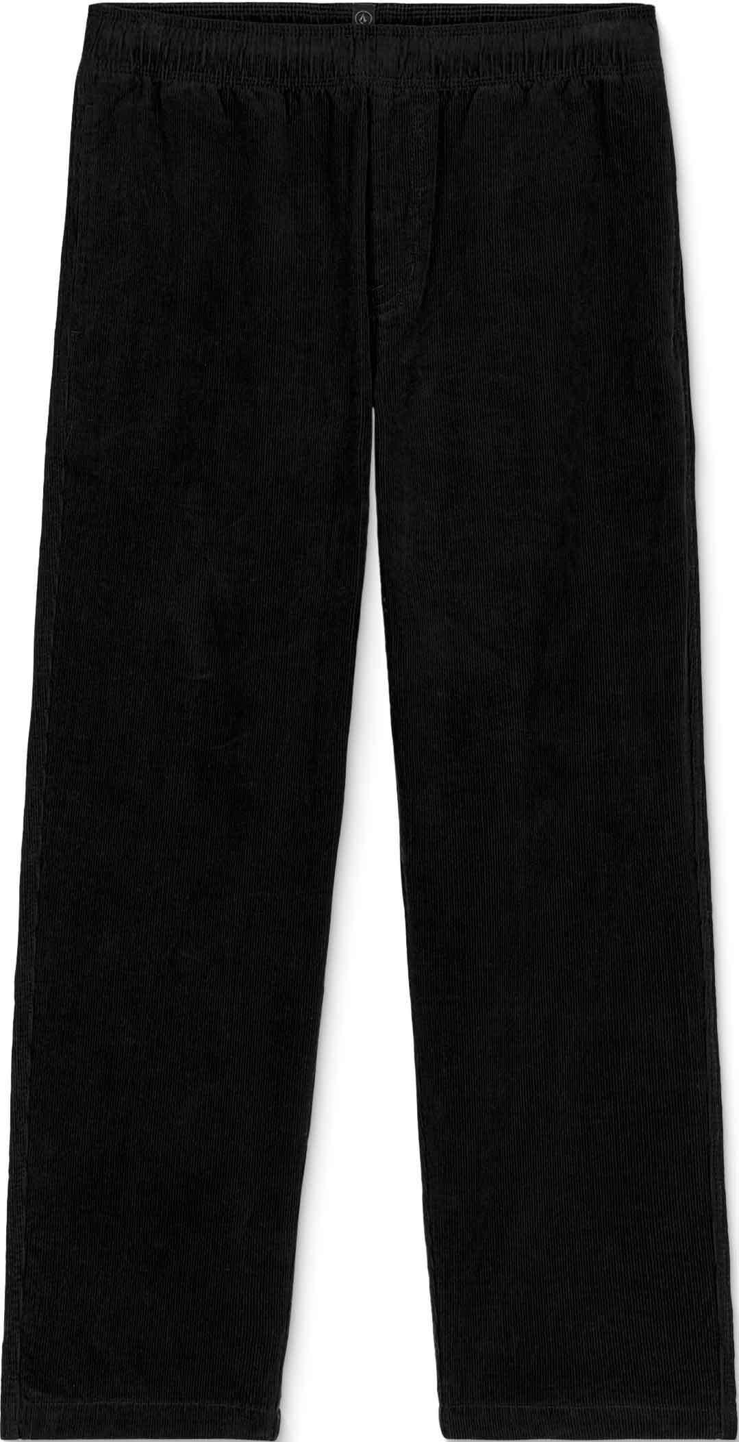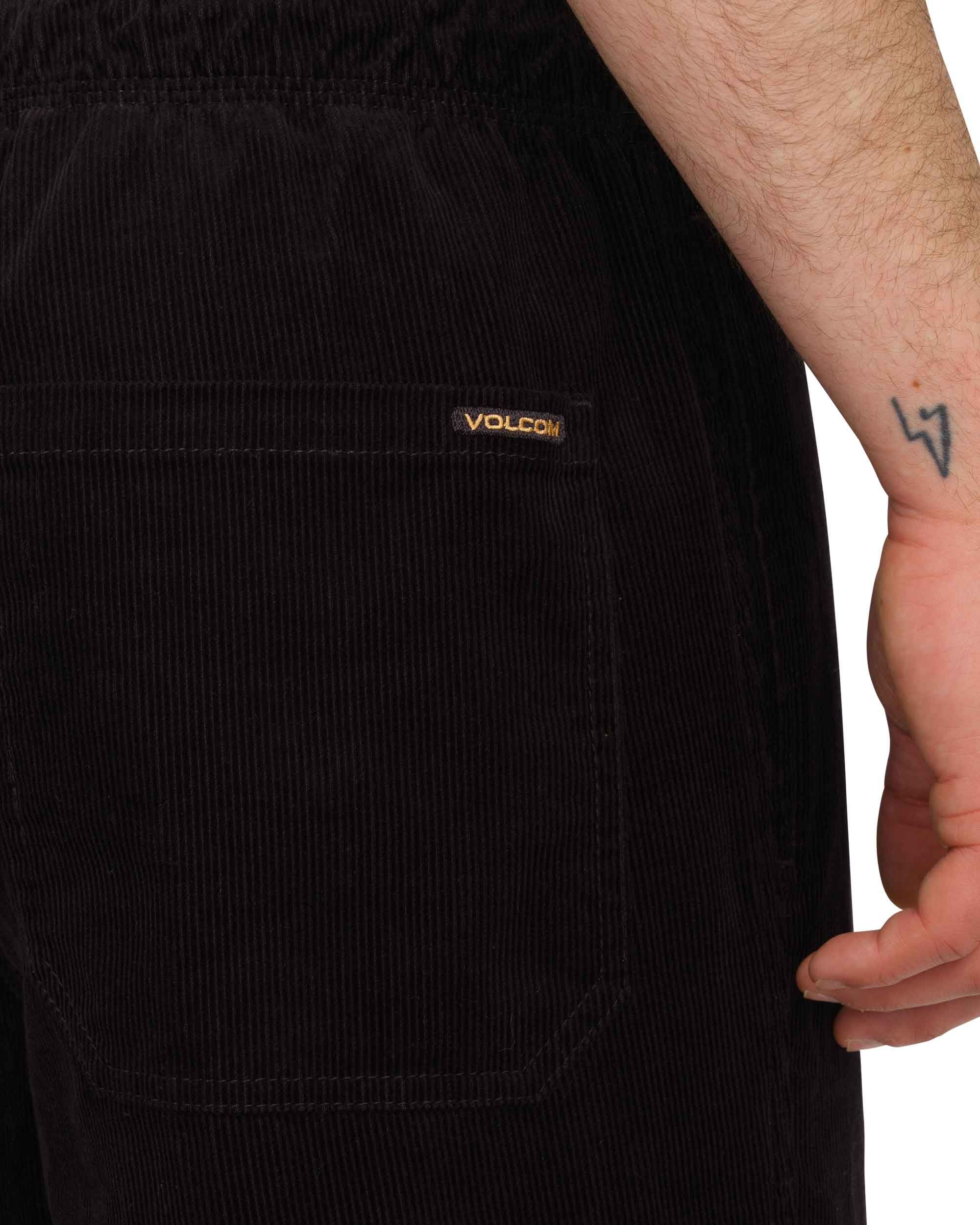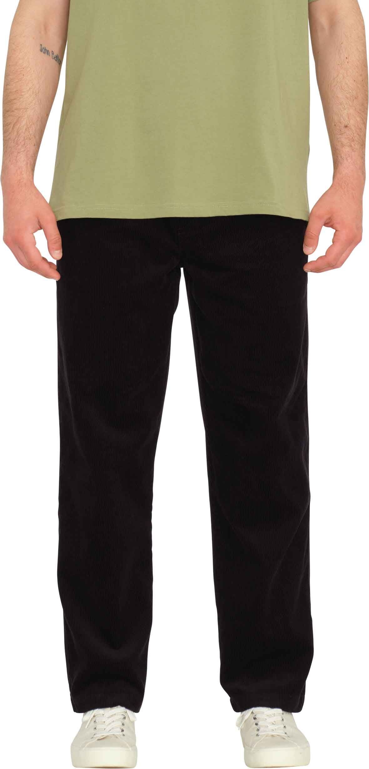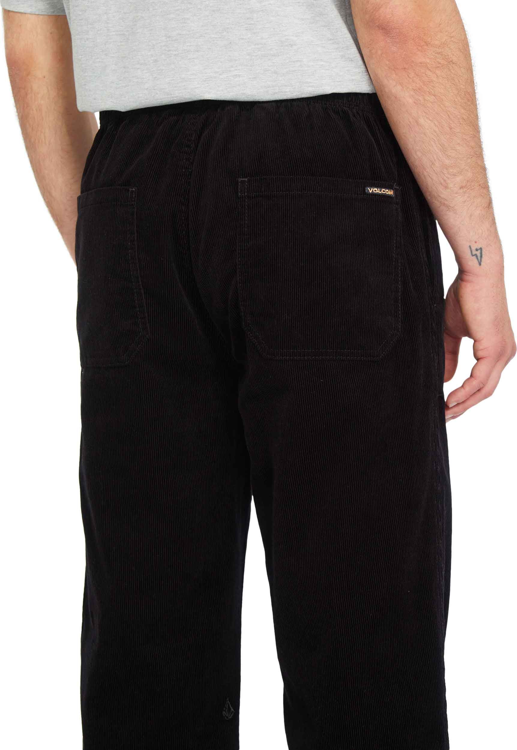 Pantalon Volcom Psychstone Ew Pant Black pour homme en velours côtelé coton, coupe fuselée raccourcie mi-haute et poches passepoilées. Pré-lavé, logo brodé discret, style workwear affirmé.