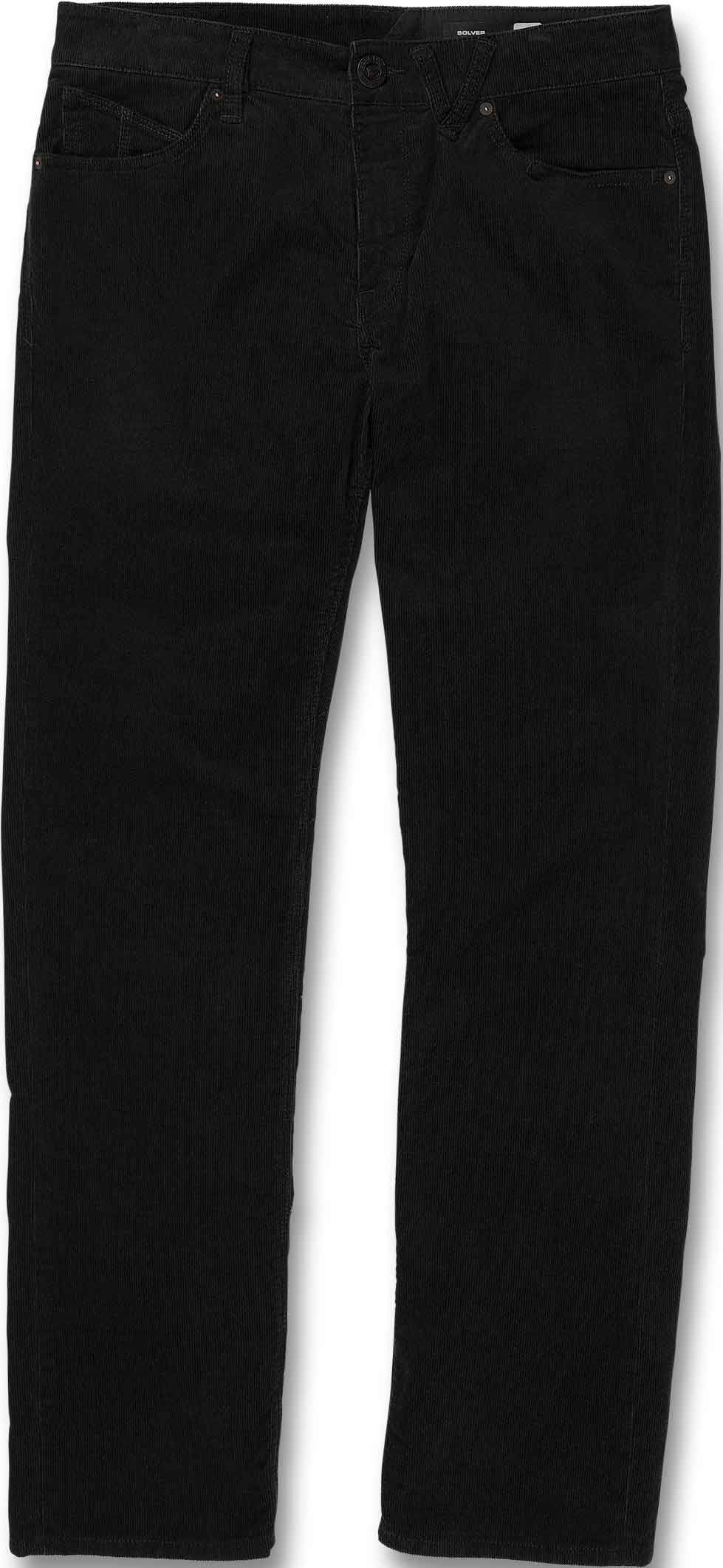 Pantalon Volcom Solver 5 Pocket Cord Black coupe droite pour homme, en corduroy confortable avec 4 poches pratiques, idéal pour les tenues hivernales.