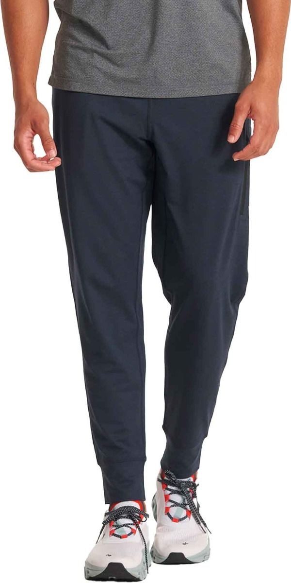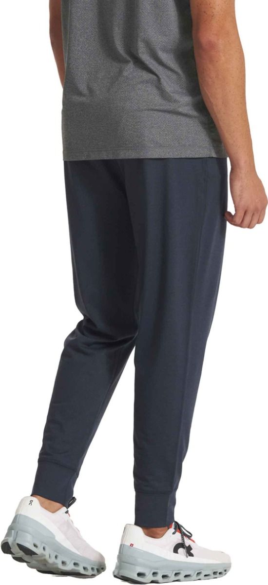 Le jogging Sunday Performance Jogger 28″ Ink Heather pour homme de Vuorie allie coupe ajustée, extensibilité maximale et tissu recyclé évacuant l’humidité pour un confort durable au quotidien.