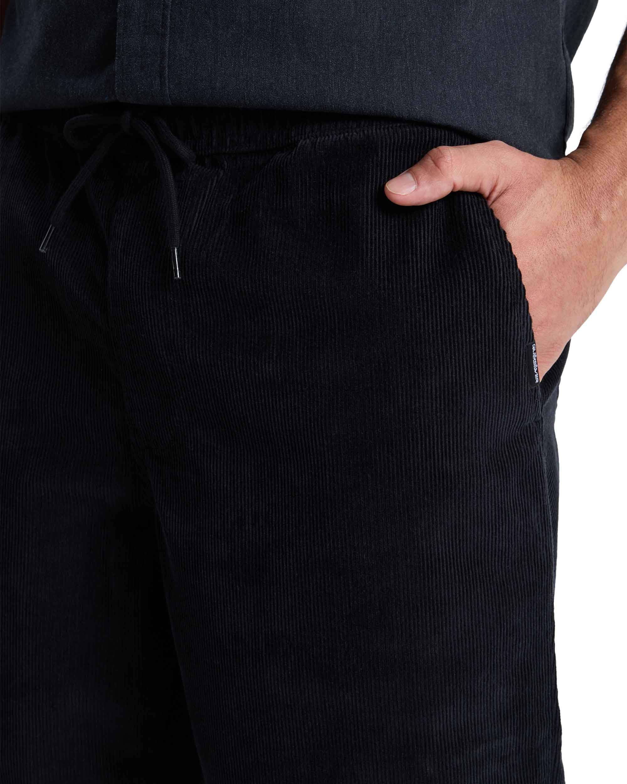 Le pantalon Quiksilver Taxer Regular Cord Black est un jean en 100 % coton, doux et chaud, avec cordon de serrage à la taille et poches avant-arrière pour un style décontracté.