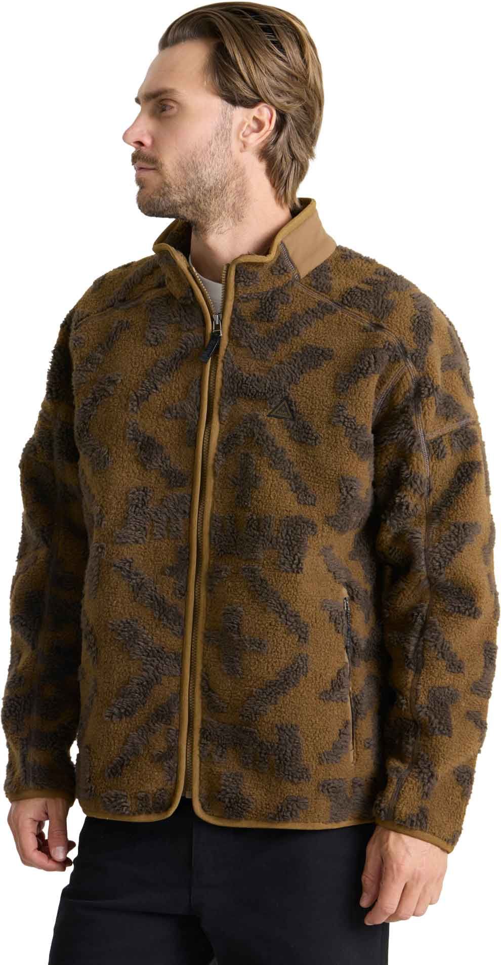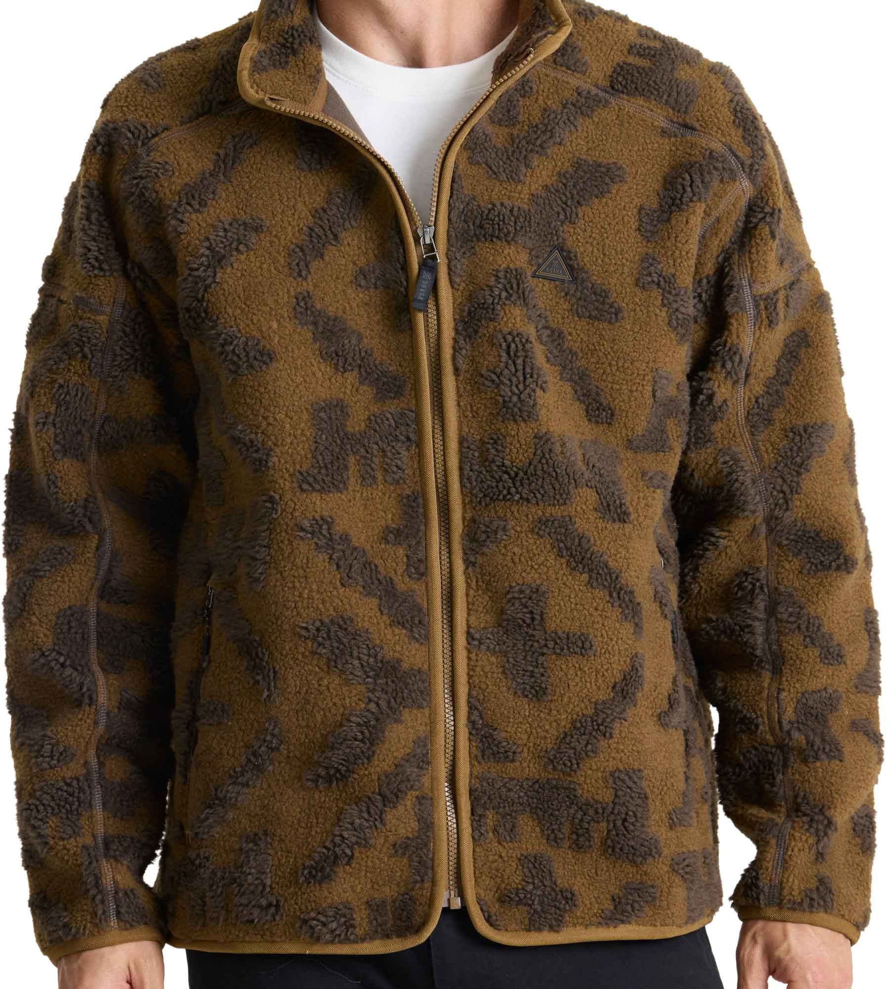 La polaire zippée homme Roark Campover Jacquard Sherpa Otter conjugue chaleur coupe-vent et style sherpa grâce à son polyester double face, ses renforts ripstop et ses poches zippées.