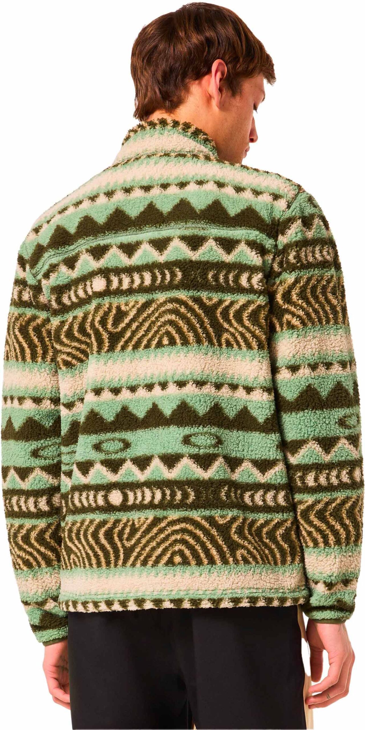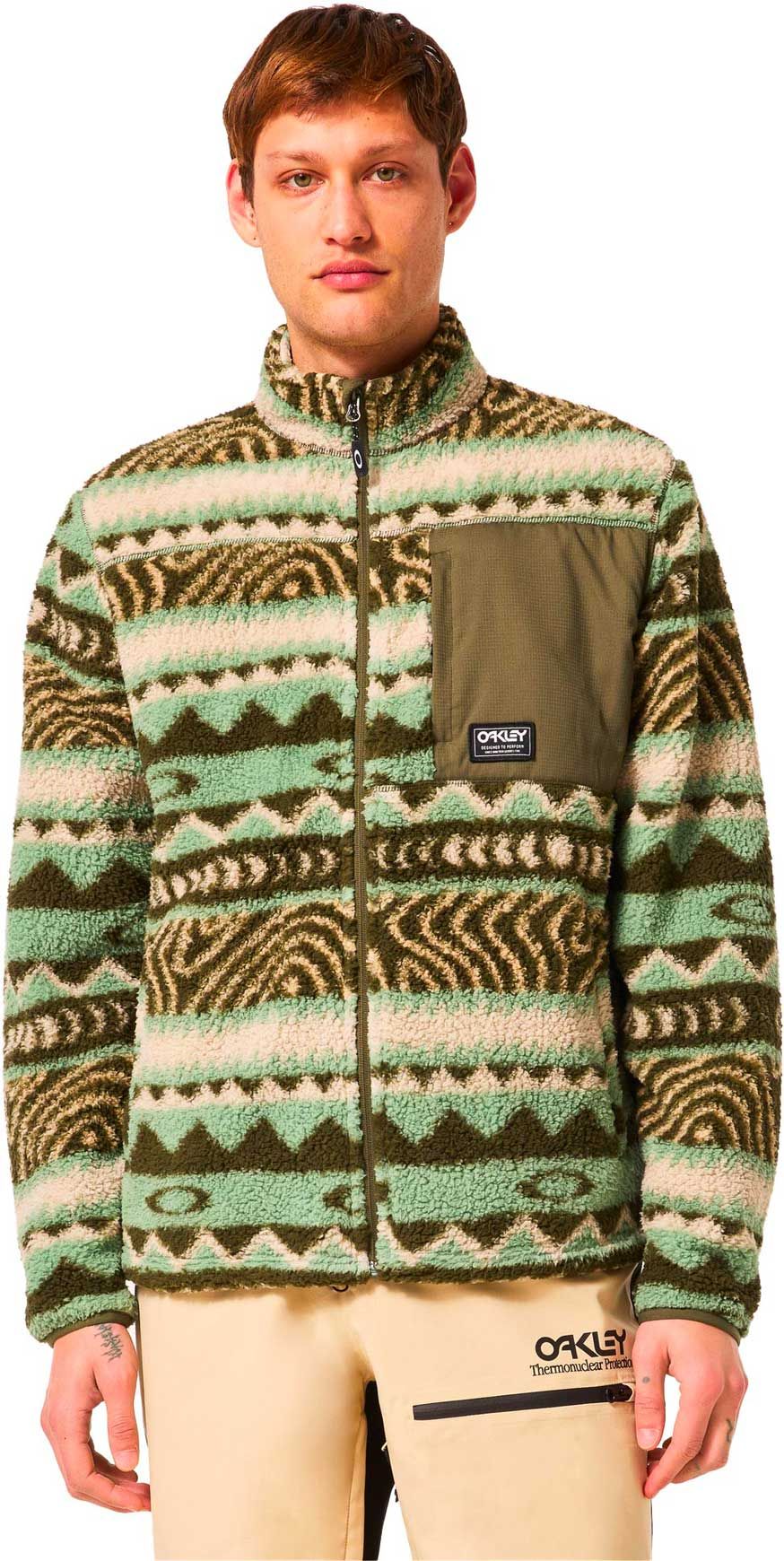 Oakley Mountain Fire Sherpa Green Norway Pattern : polaire homme en sherpa douce, légère et chaude, coupe ajustée, 3 poches.