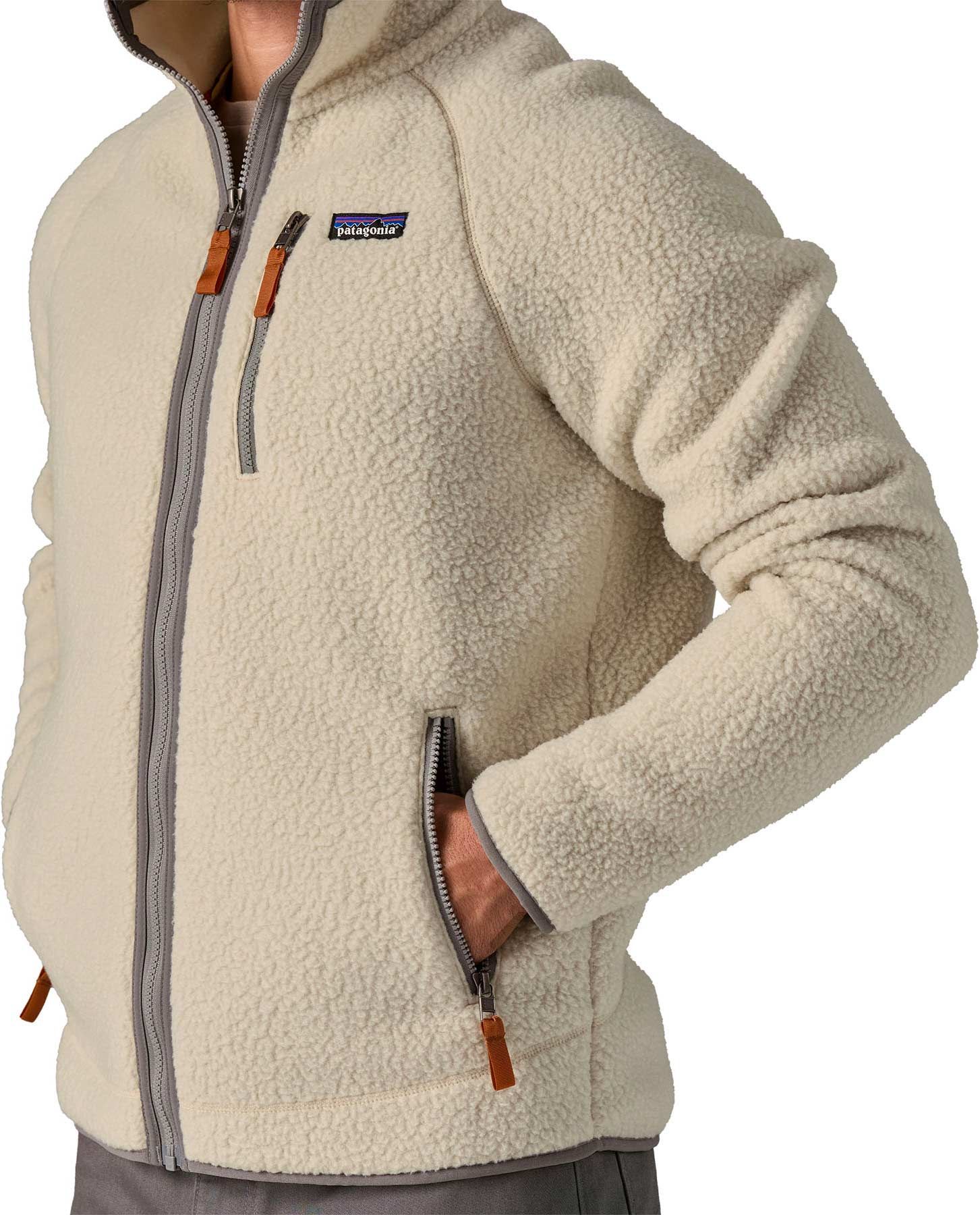Polaire Patagonia Retro Pile Jkt Pelican homme, col montant, matière imitation mouton chaude, poches zippées, manches raglan pour liberté de mouvement, idéale en montagne ou au quotidien.