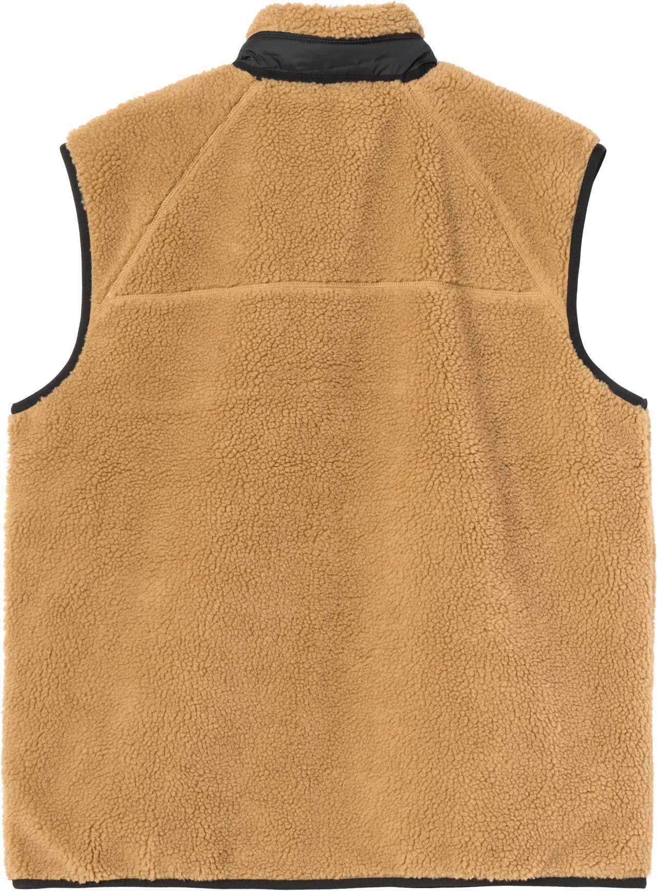 Carhartt WIP Prentis Vest Liner Leather Black : gilet polaire sans manches en cuir noir, chaud et épuré, avec 2 poches chauffe-mains et logo poitrine.