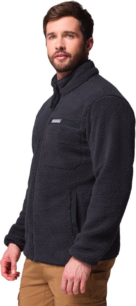 La polaire Columbia Rugged Ridge High Pile Full Zip Black pour homme, en polyester recyclé, offre chaleur sherpa et coupe ajustée contre le froid urbain.