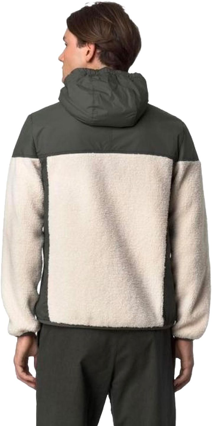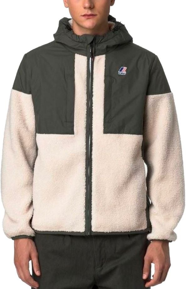 Veste bi-matière K-Way Samson 4.0 Orsetto Green Blackish Ecru, coupe-vent et déperlante, combinant nylon technique et polière orsetto ultra-douce pour un confort chaud en mi-saison.