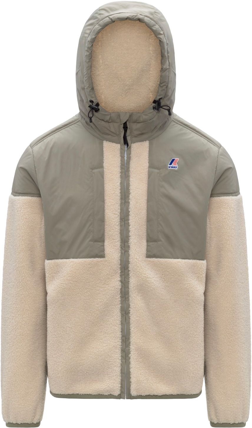 Veste bi-matière K-Way Samson 4.0 Orsetto Green Oak Ecru, coupe-vent et déperlante, mêle nylon technique et polaire ultra-douce pour un look urbain mi-saison.