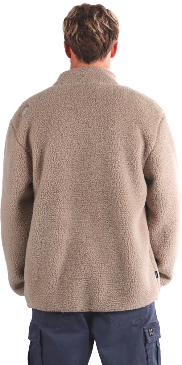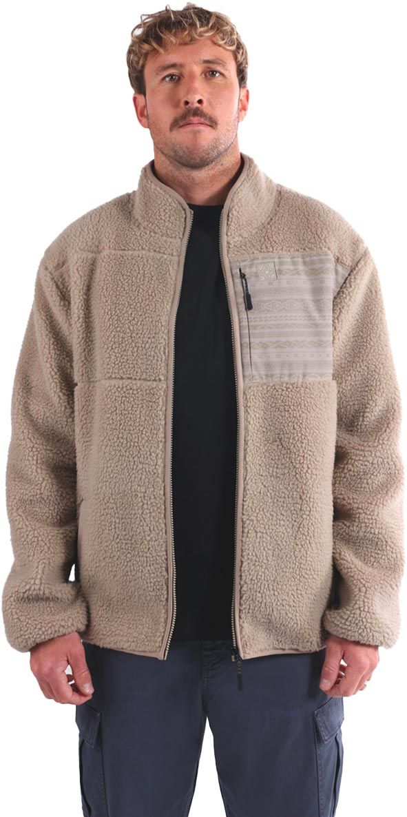 Pol Oxbow Warmedup Fullzip Sherpa Fleece Rock : polaire homme en sherpa chaude, col montant, poignets élastiqués, imprimé graphique original.