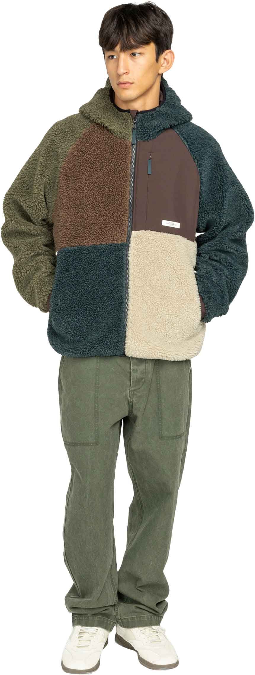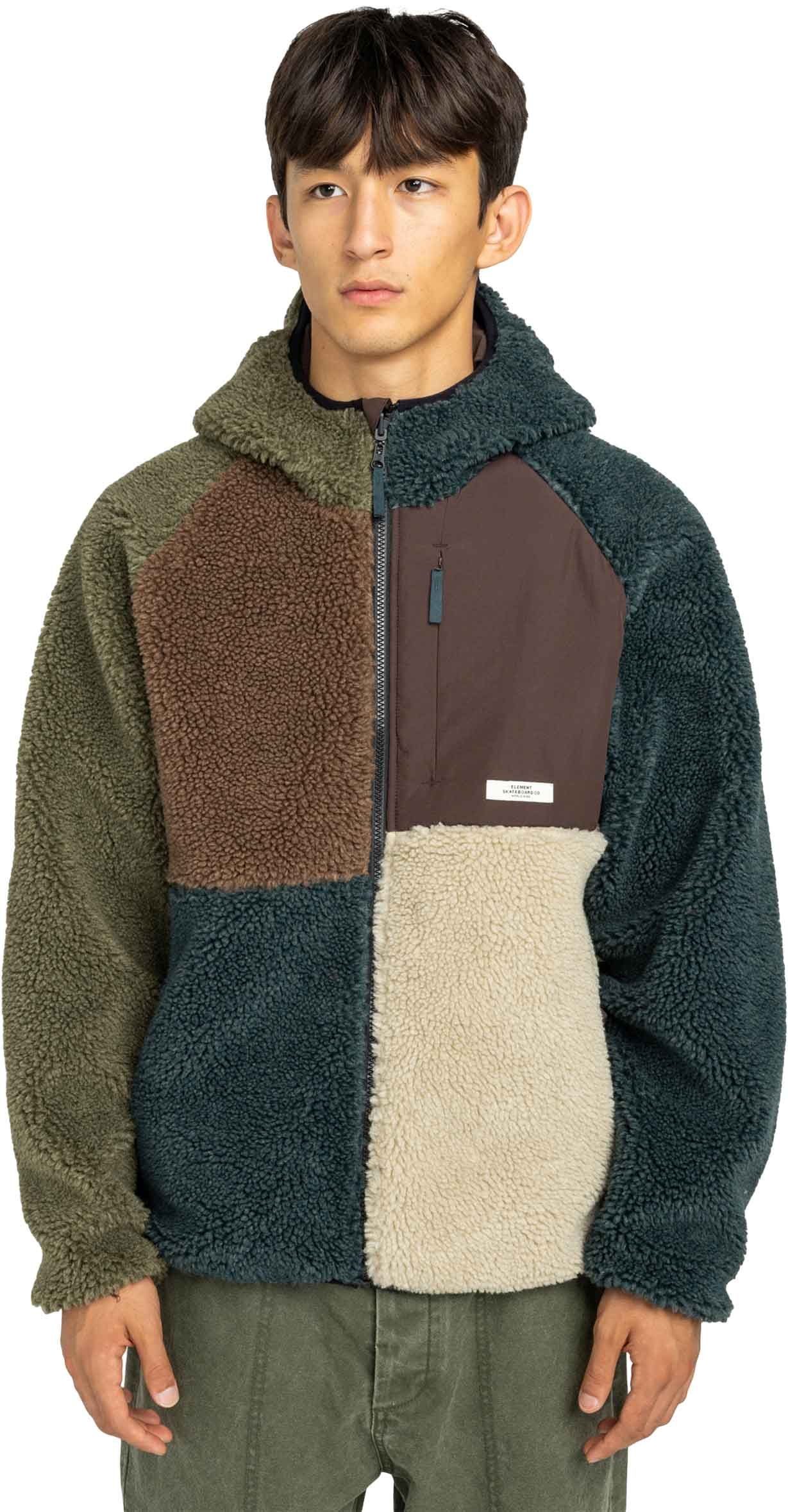 Pull zippé en sherpa pour homme Element Wolfe Sherpa Multicolor, doux et chaud en polyester recyclé épais, avec poche poitrine et poches chauffe-mains.