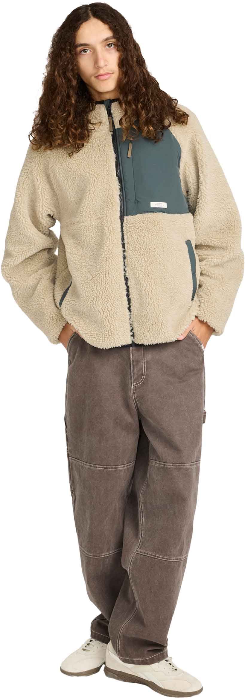 Le pull zippé en sherpa pour homme Wolfe Sherpa Oat Milk d’Element allie polyester recyclé épais et isolation performante pour les sorties hivernales comme la mi-saison, avec poche poitrine et poches chauffe-mains.