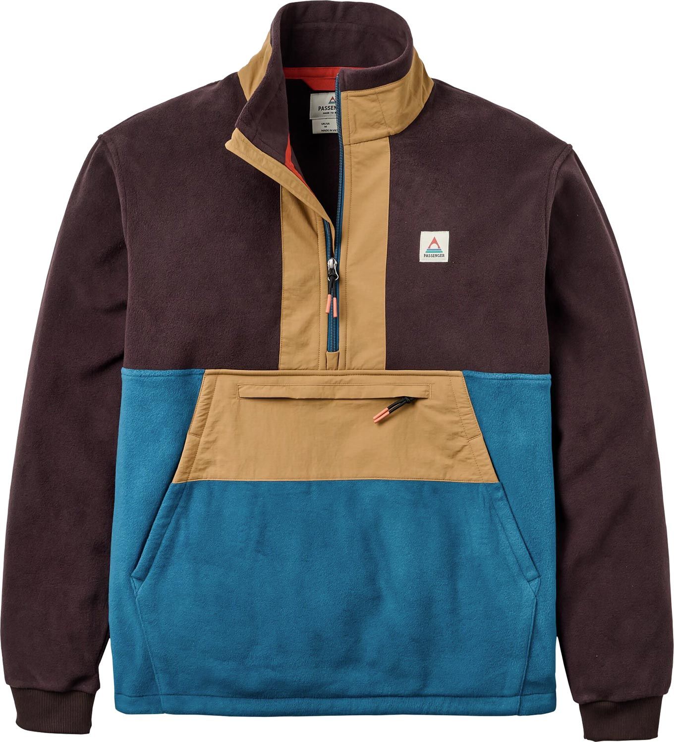 Passenger Clothing Woodland Hoodless 2.0 1/2 Zip Recycled Polar Fleece Espresso Tidal Blue