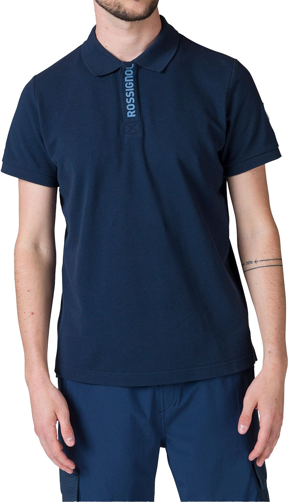 Rossignol Rossi Polo SS Dark Navy, polo homme en coton piqué doux, allie confort quotidien et style épuré affirmant l’héritage montagnard.