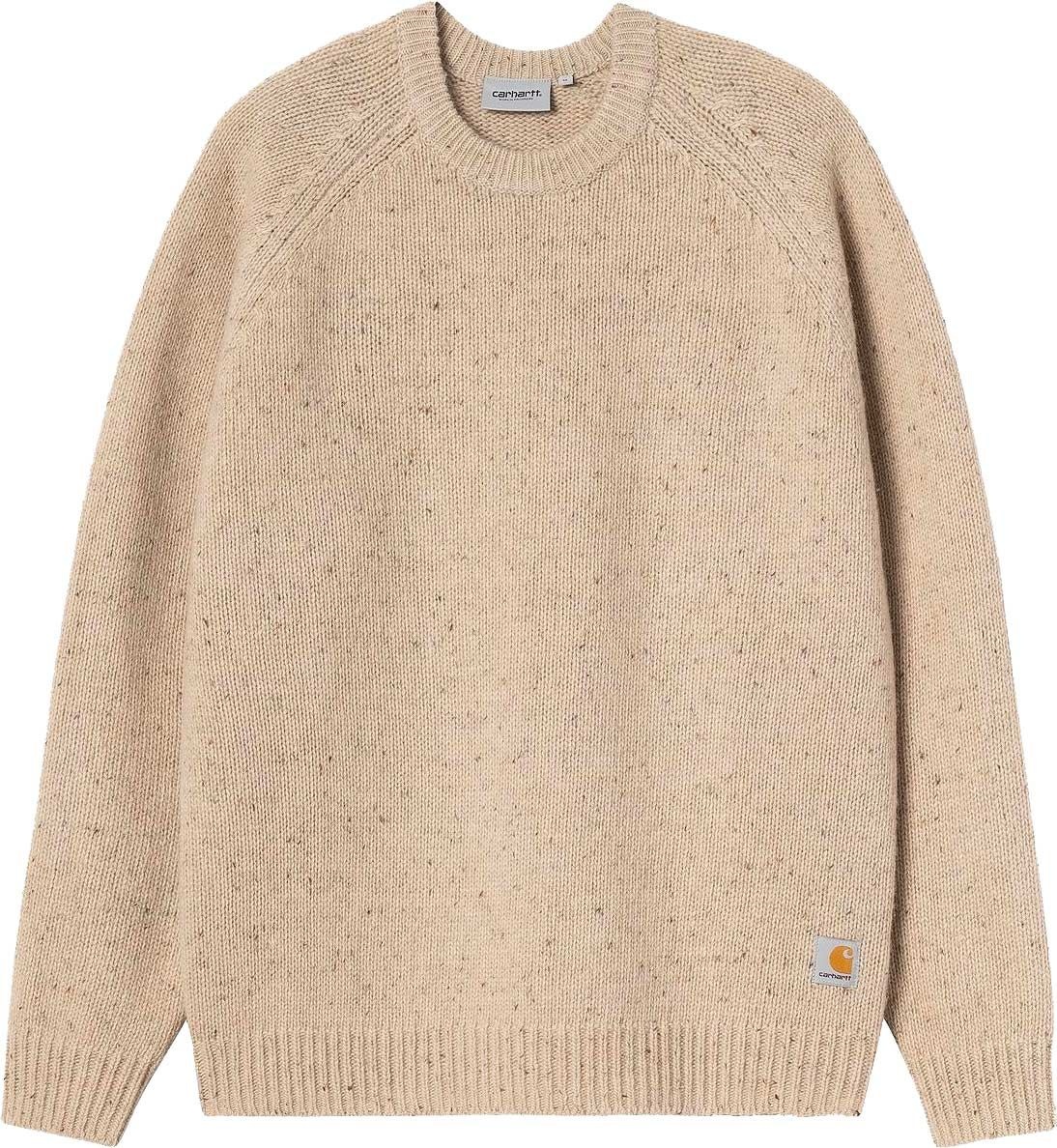 Pull Carhartt WIP Anglistic Sweater Speckled Fleur de Sel homme à col rond, tricoté laine-acrylique-coton pour chaleur et confort, avec manches raglan adaptées à toutes morphologies.
