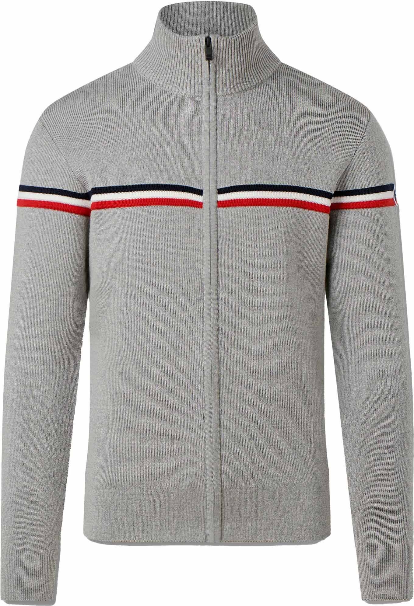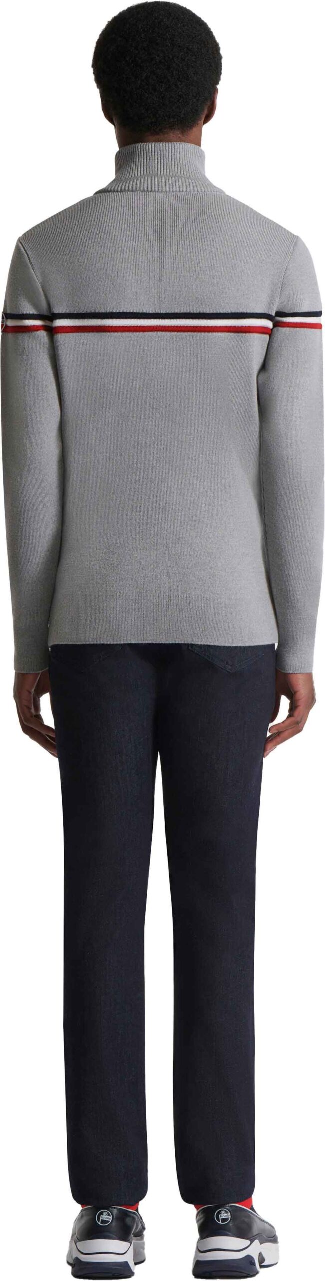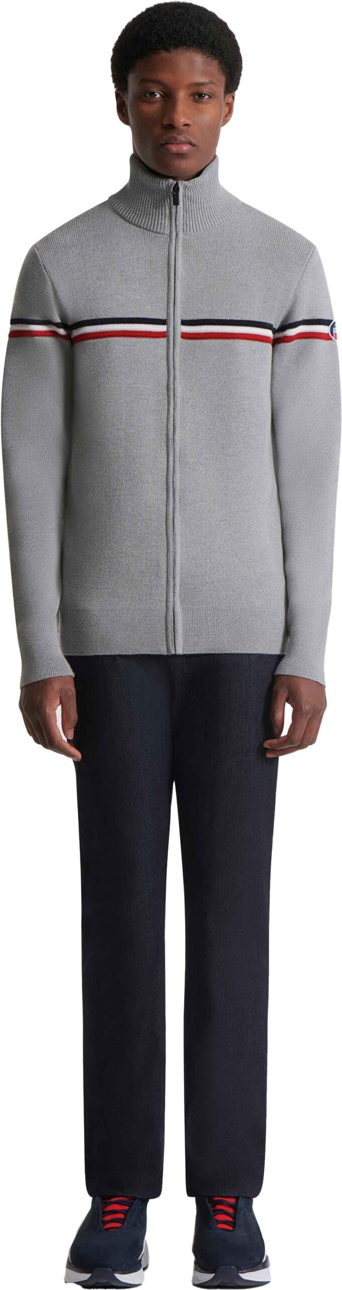 Pull zippé Fusalp Wengen Fiz II Silice pour homme en laine de mérinos italienne, thermorégulant et respirant, avec col montant protecteur et finitions tricolores.