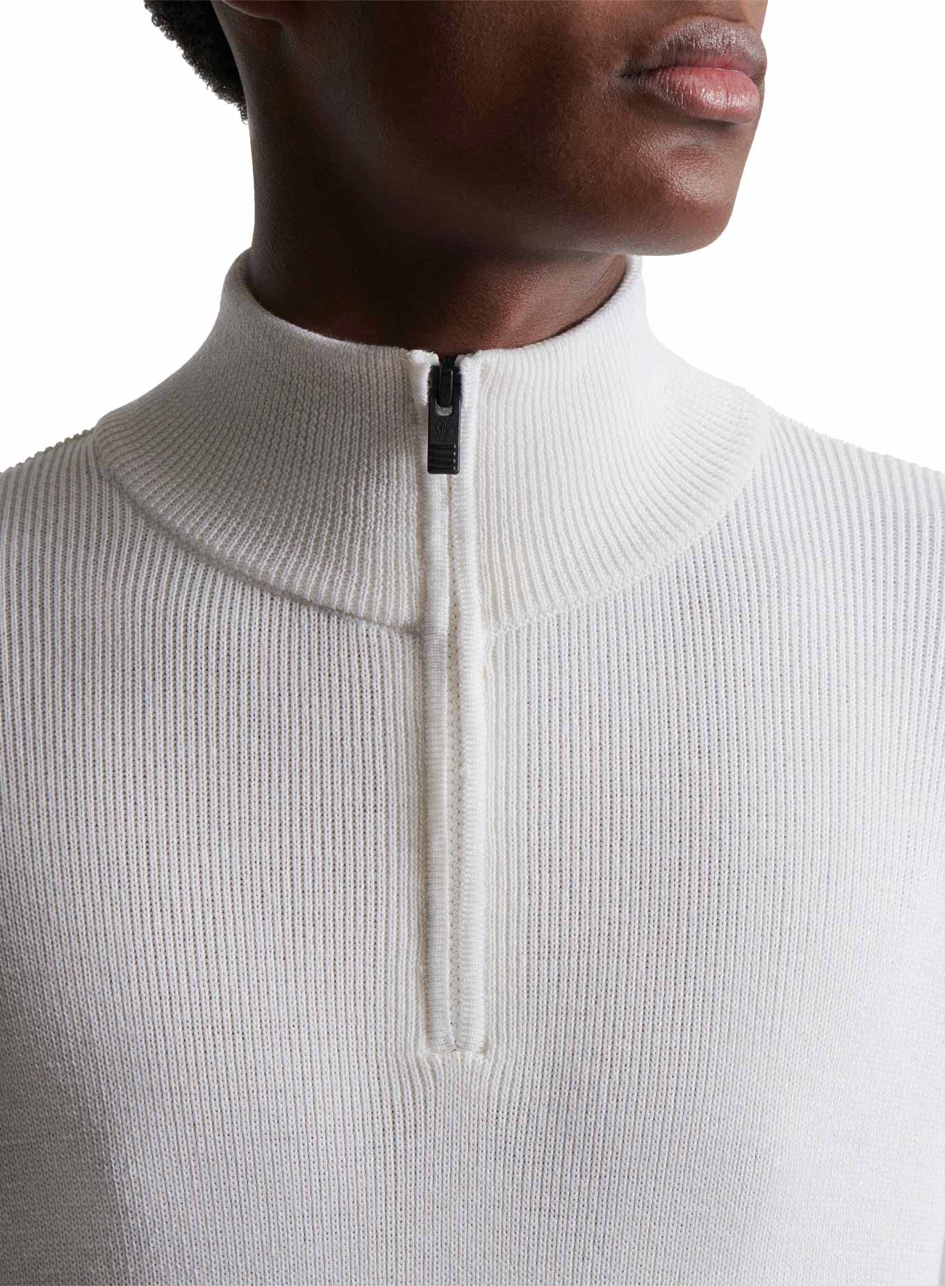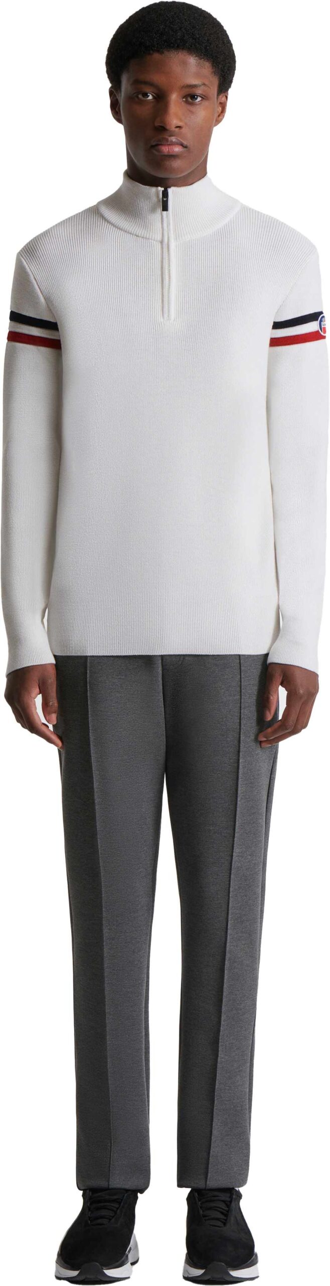 Pull zippé Fusalp Wengen IV Neige/Marin en laine mérinos italienne thermorégulante, douce et chaude, au col montant protecteur.