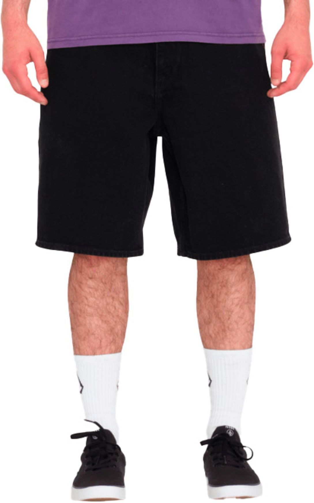 Fermeture zippée et bouton métal gravé Volcom. Passants de ceinture. Étiquette logo tissée sur l’ourlet arrière.