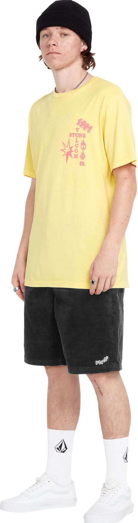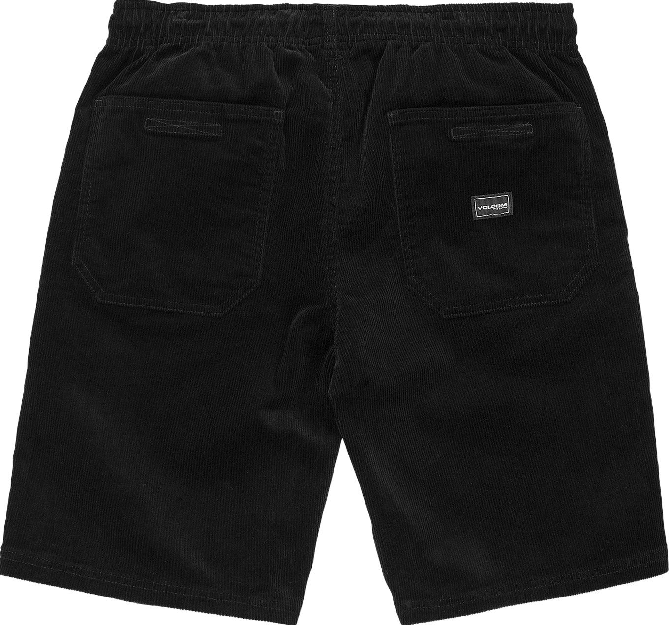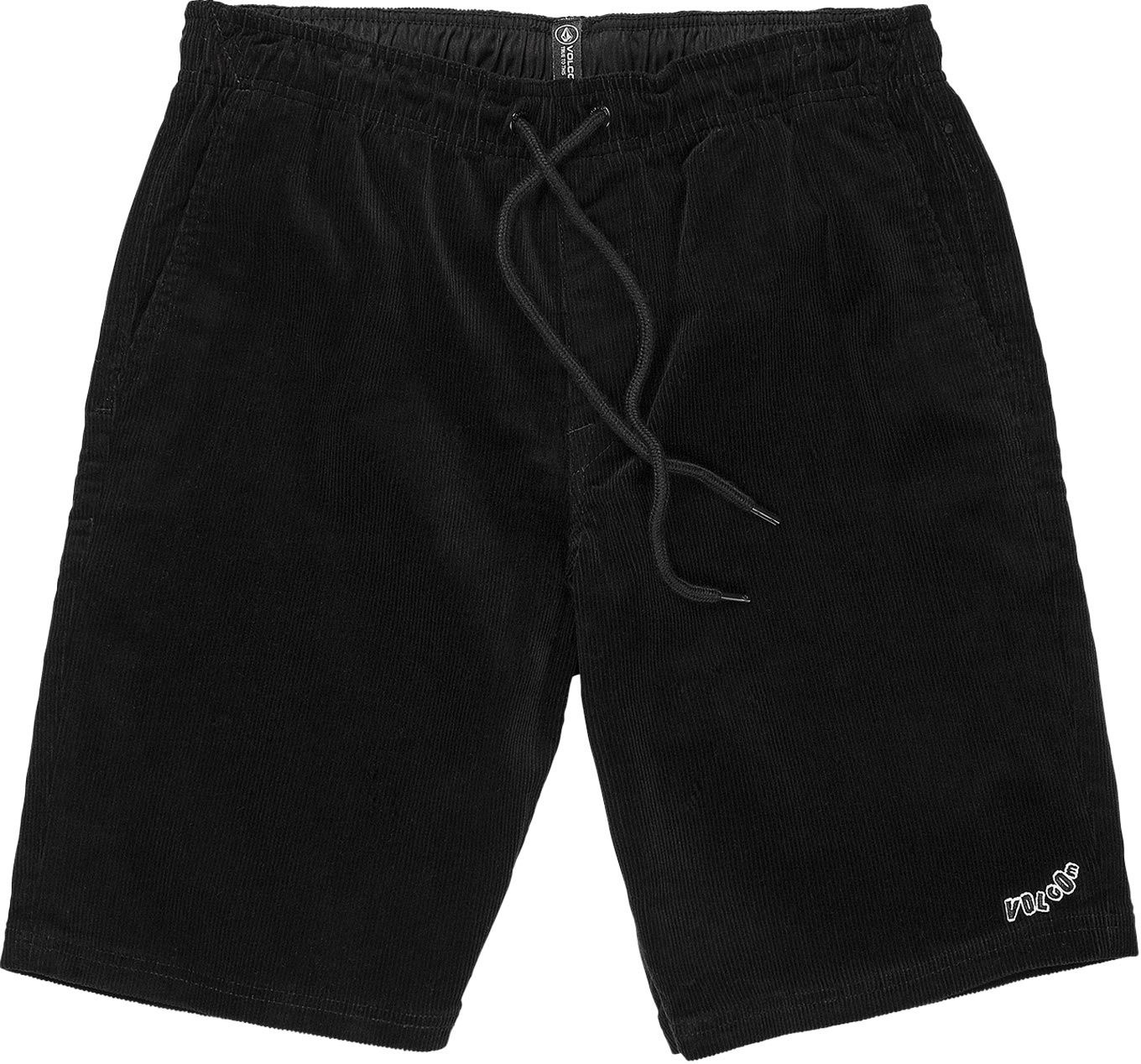 Short Volcom Outer Spaced 21″ en velours côtelé noir pour homme, taille ajustable et poches pratiques pour un été décontracté.
