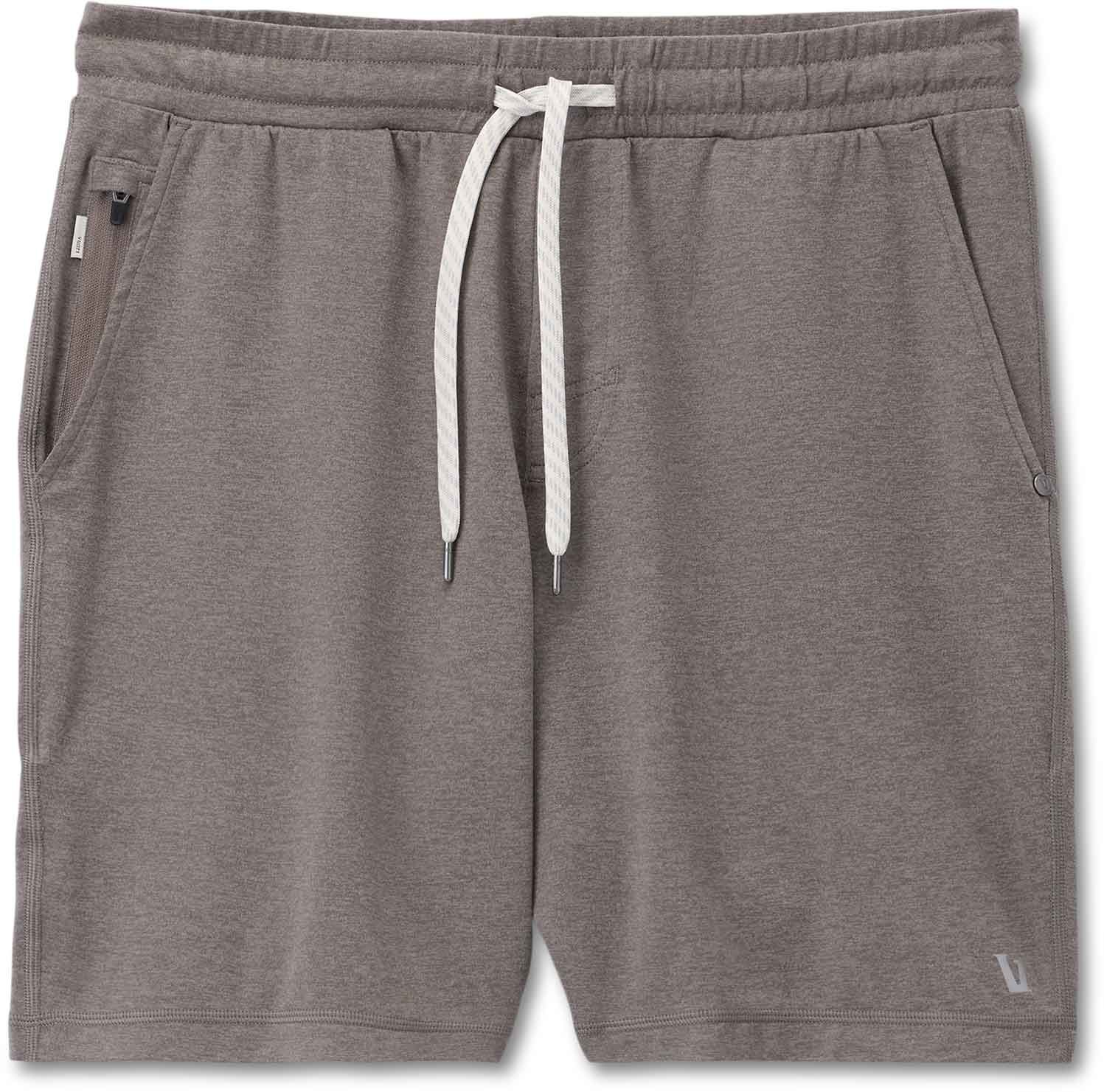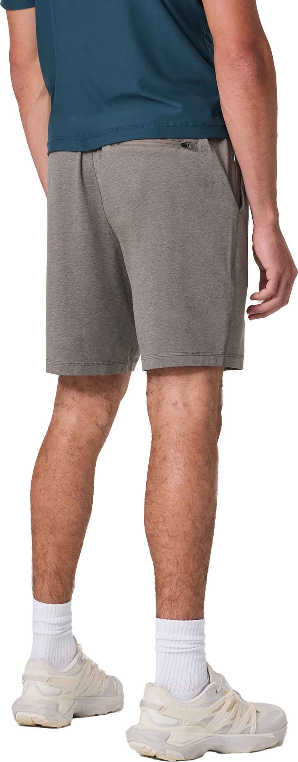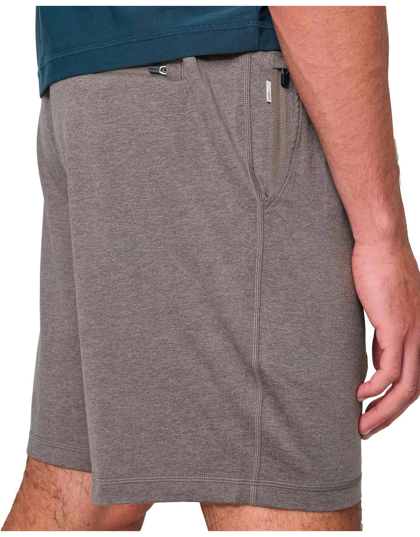 Ponto Performance Short 7″ Chia Heather pour homme en tissu DreamKnit™ ultra-léger et doux, séchage rapide, ceinture élastique avec cordon, poche arrière zippée.