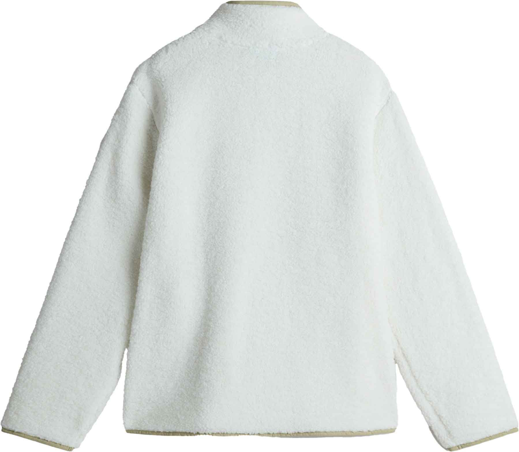 La régulation de la température est facilitée par un col montant et une fermeture éclair 1/4, alors que deux poches latérales permettent de ranger vos affaires ou de réchauffer vos mains. La coupe décontractée aux allures rétro s’inscrit dans la collection Automne-Hiver 2024/2025.