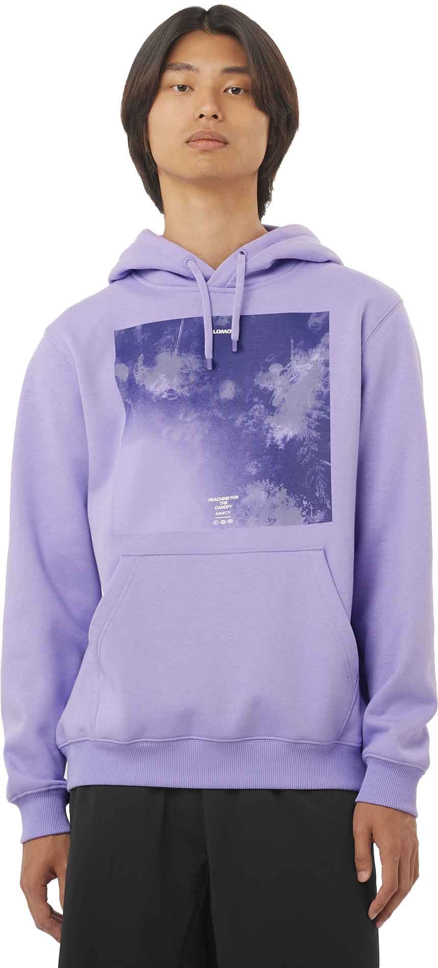 Minimaliste et épuré, ce sweat arbore le logo Salomon intégré dans des motifs inspirés de feuilles et de nuages, évoquant à la fois sa légèreté et sa construction écologique, tout en lui conférant un style unique.