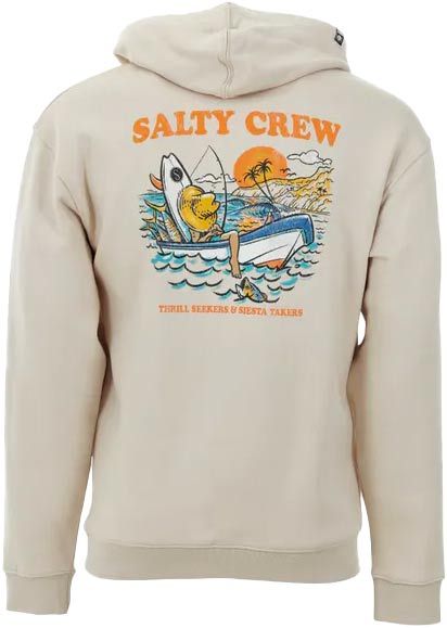 Sweat à capuche Salty Crew Downtime Hood Fleece Moonbeam pour homme, en coton-polyester, avec poche kangourou et imprimés pêche-surf sur le dos et les manches, style décontracté outdoor.