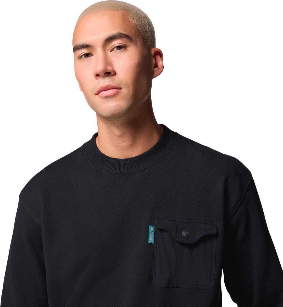 Sweat Columbia High Cascades French Terry LS Black homme en coton respirant, bords-côtes ajustés, confort et style intemporel au quotidien.