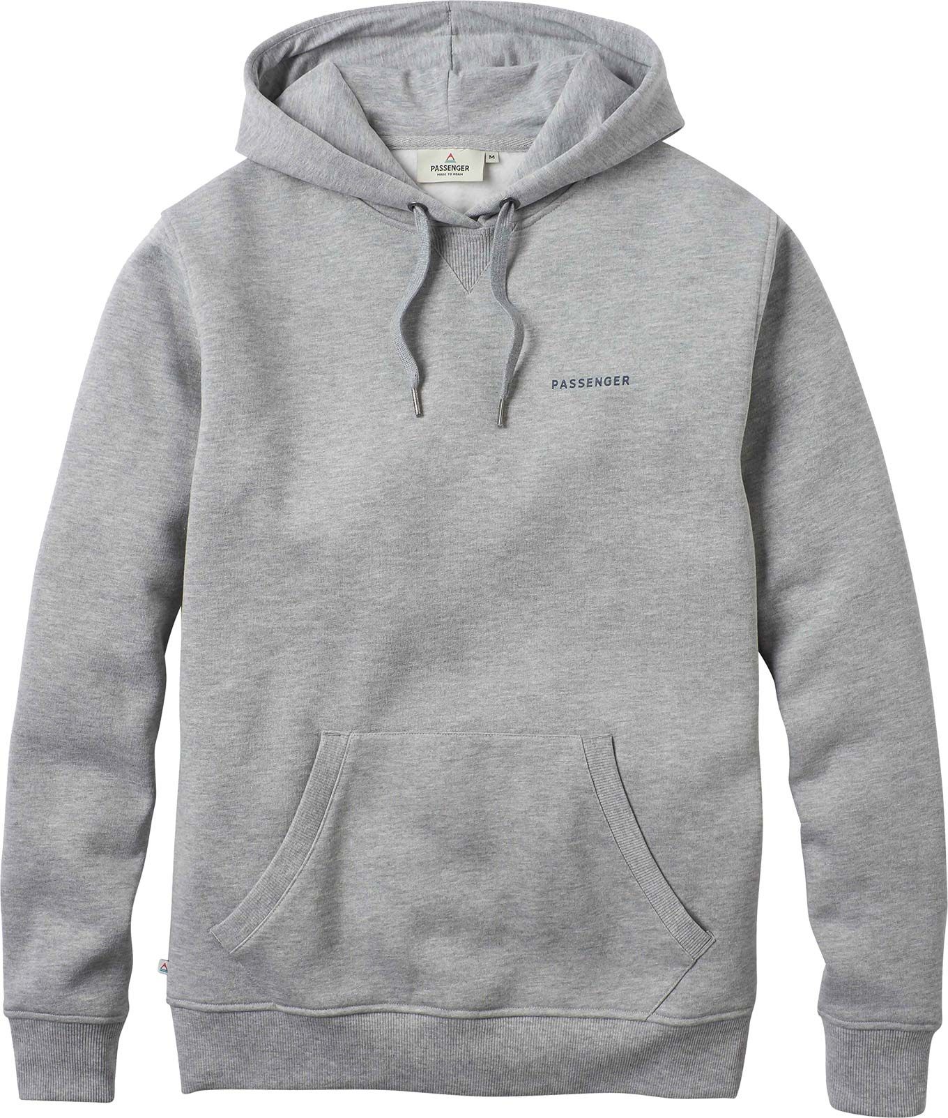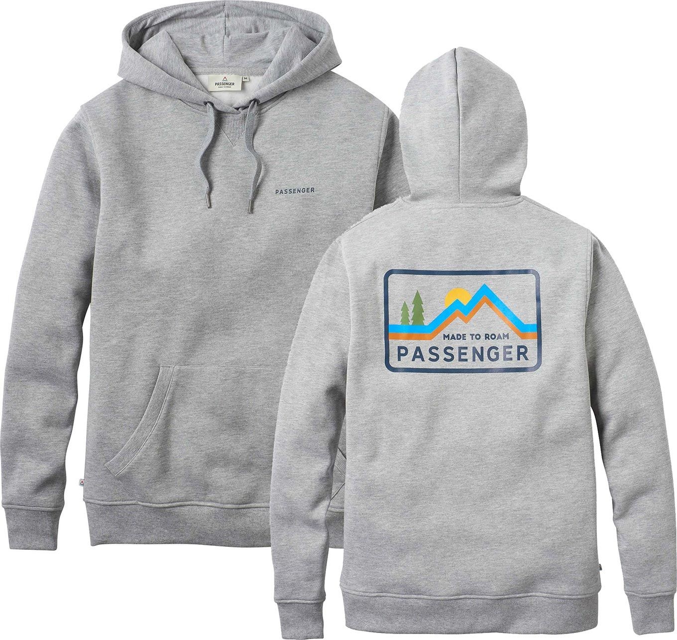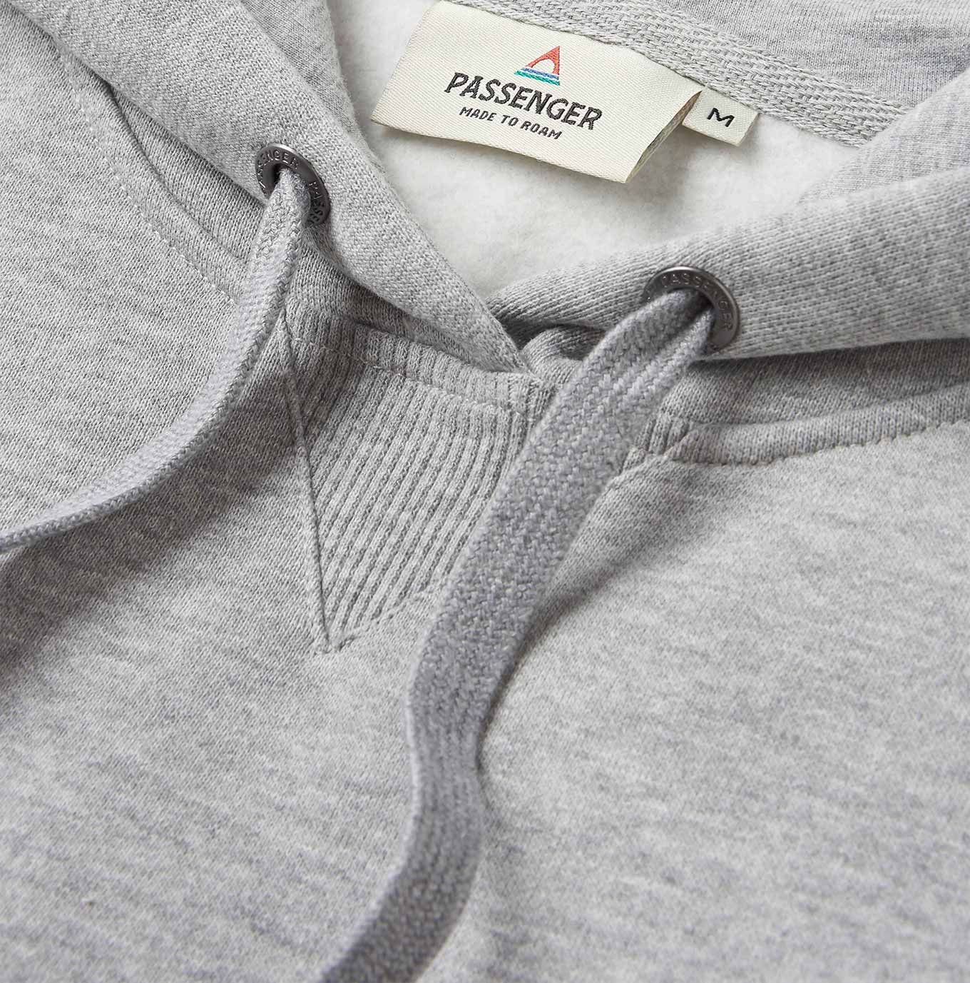 Sweat à capuche homme Passenger Clothing Made To Roam Grey Marl en matière recyclée, doux et chaud, avec capuche ajustable et poche kangourou pour le confort en voyage, van life ou soirées outdoor.