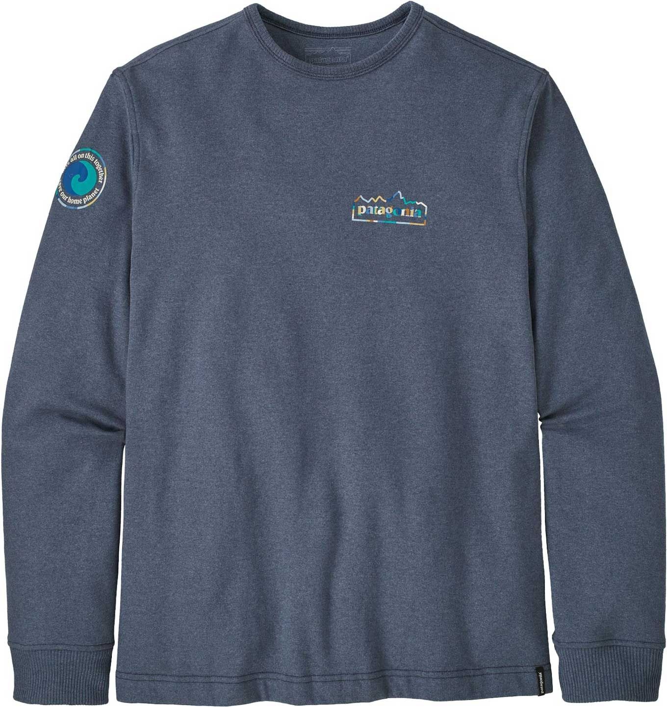 Le sweat Patagonia LW Unity Fitz Wildrise Crew New Navy pour homme allie confort doux en coton recyclé et coupe classique col ras-du-cou, en matière polaire intérieur brossé et finitions côtelées.
