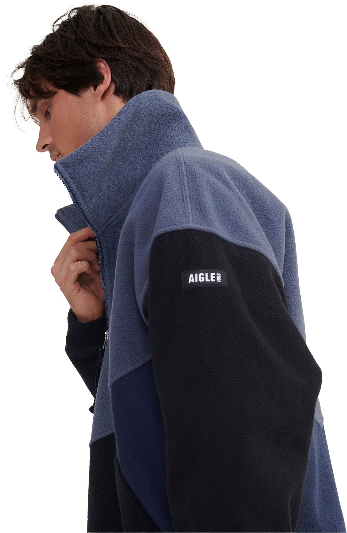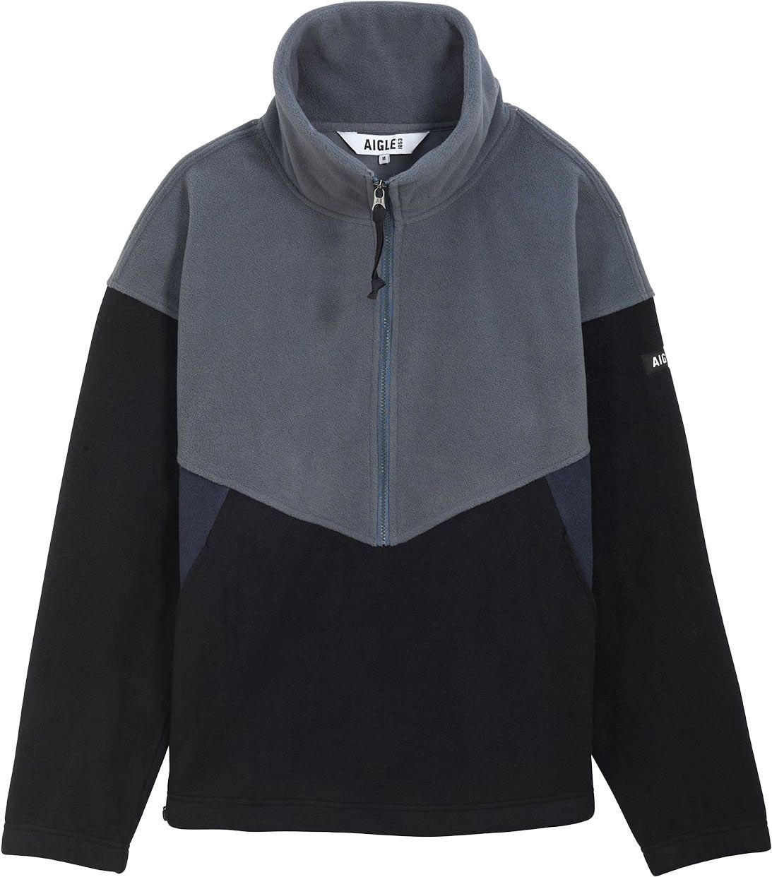 Polaire Sherpa Demi-Zippée Noire Aigle homme, col montant zippé, poches chauffe-mains, bas ajustable, coupe relaxed confort Automne-Hiver 2023/2024.