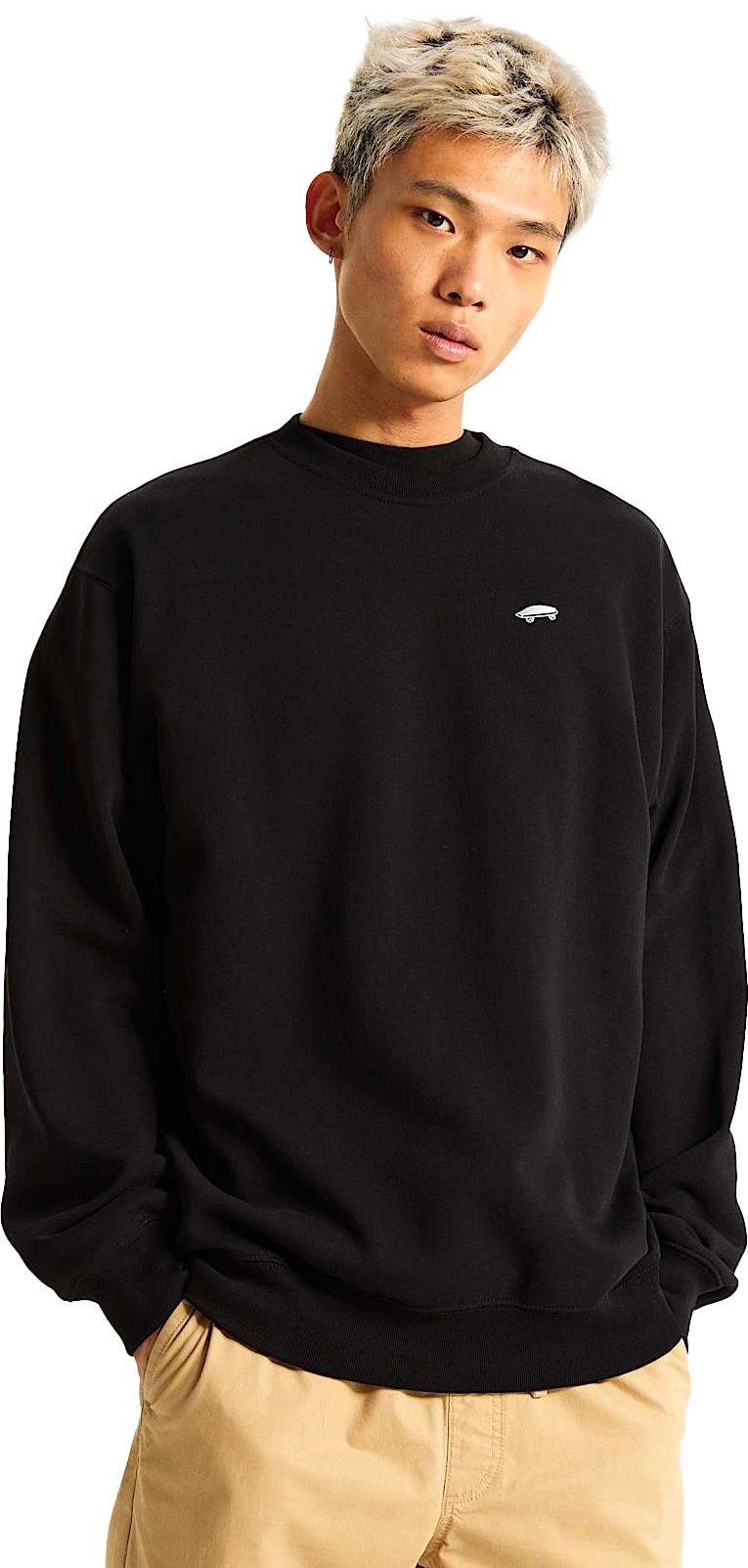 Le sweat Vans Salton Loose Ft Crew Black pour homme allie confort et style grâce à son molleton 100% coton brossé et à sa coupe ample.